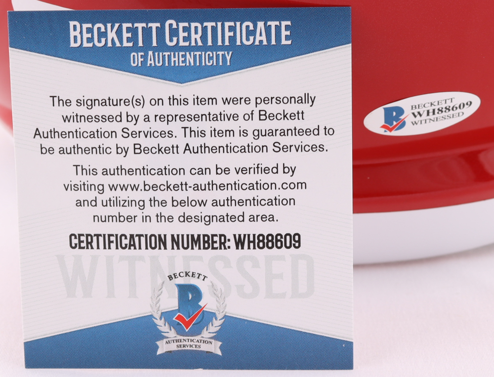 The lot / autograph(s) includes an official Beckett Authentication Services serially-numbered hologram and matching COA for authenticity purposes. The signing of this item was witnessed by Beckett.