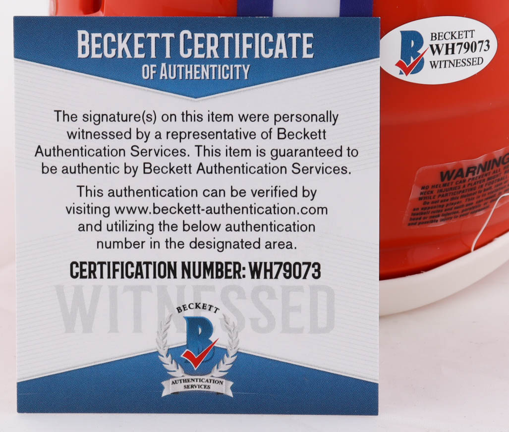 The lot / autograph(s) includes an official Beckett Authentication Services serially-numbered hologram and matching COA for authenticity purposes. The signing of this item was witnessed by Beckett.
