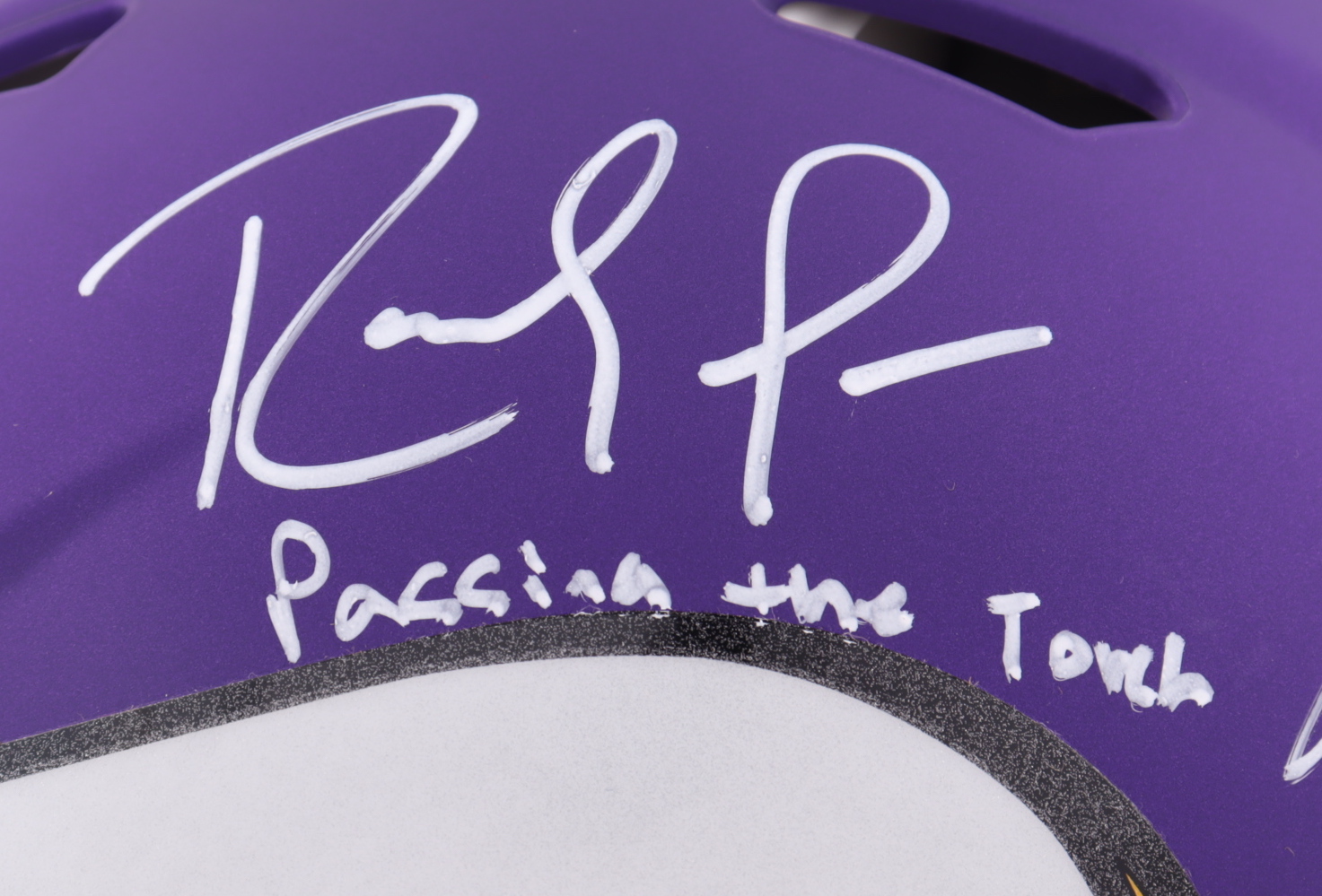 Justin Jefferson & Randy Moss Signed Vikings Full-Size Authentic On-Field Speed Helmet Inscribed "Passing The Torch" (Beckett COA)