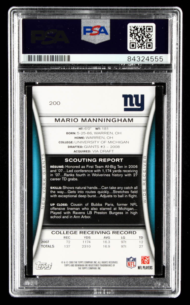 Mario Manningham Signed 2008 Bowman #200 RC (PSA Encapsulated)