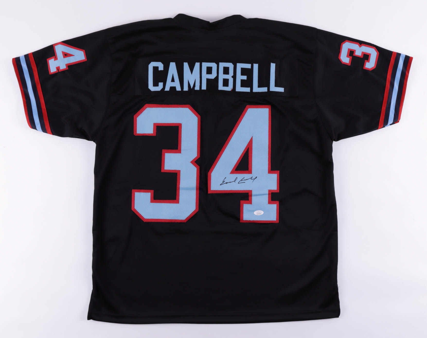 Custom on-field style jersey. Everything is sewn on, size XL. Has been hand-signed by Earl Campbell (HOF).