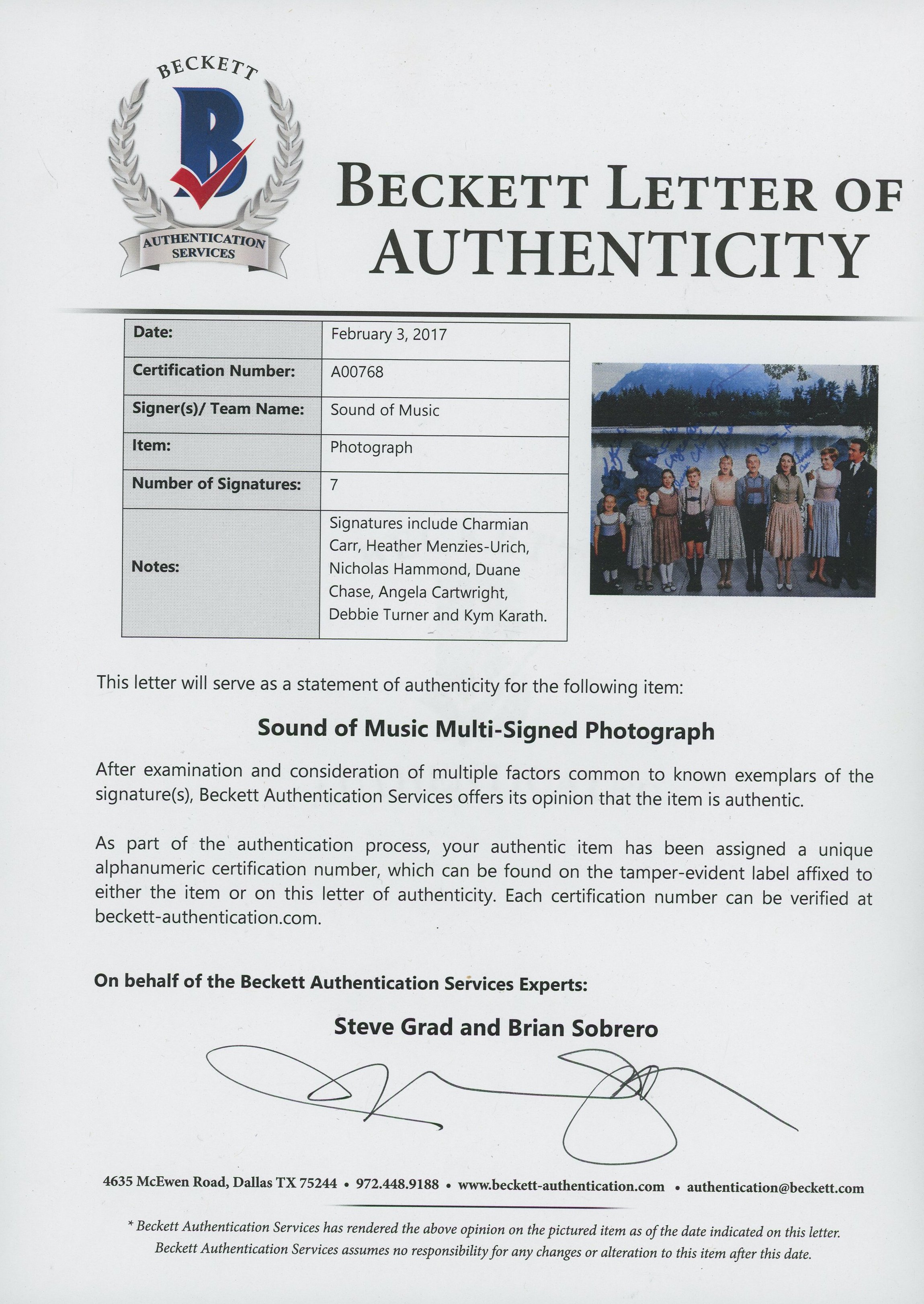 "The Sound of Music" 8x10 Photo Signed by (7) with Charmain Carr, Nicholas Hammond, Heather Menzies, Duane Chase (Beckett COA)