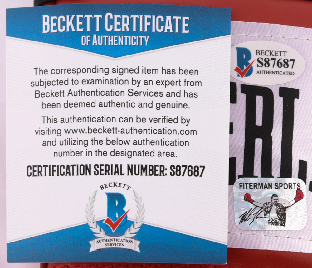 The lot / autograph(s) includes an official Beckett Authentication Services serially-numbered hologram and matching COA as well as an official Mike Tyson Fiterman Sports Group hologram for authenticity purposes.