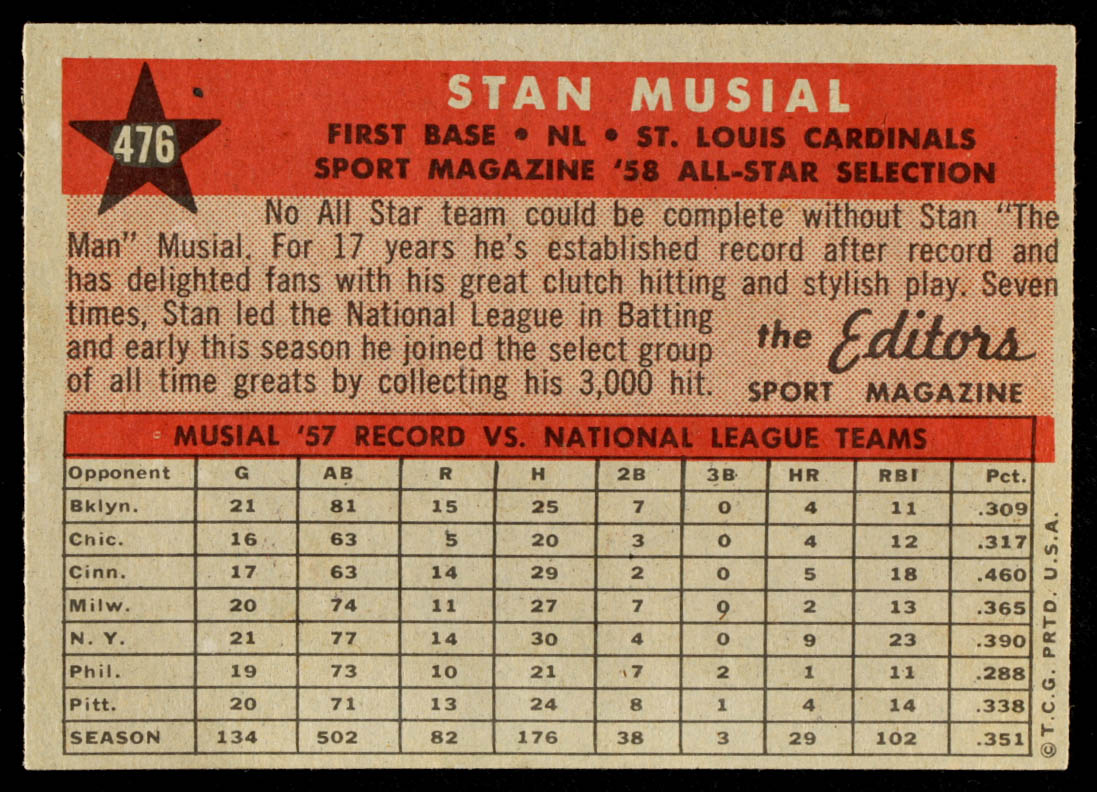 Stan Musial 1958 Topps #476 All-Star TP