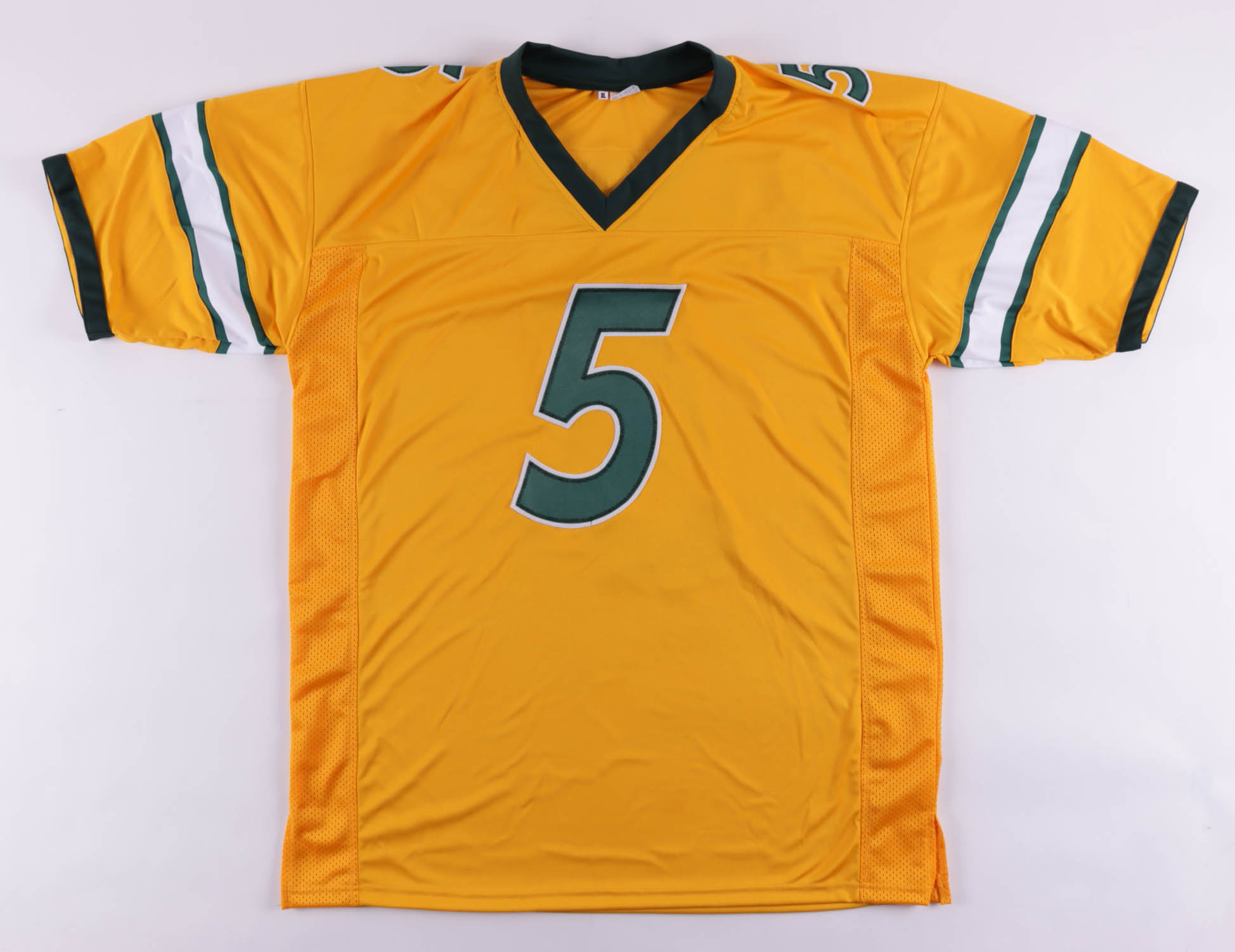 Custom on-field style jersey. Everything is sewn on, size XL. Has been hand-signed by Trey Lance.