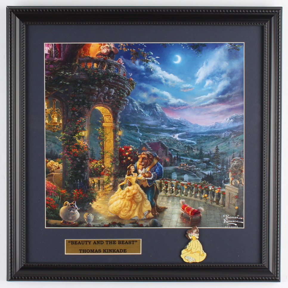 Thomas Kinkade Walt Disney's "Beauty and the Beast" 16x16 Custom Framed Print Display with (1) Belle Pin