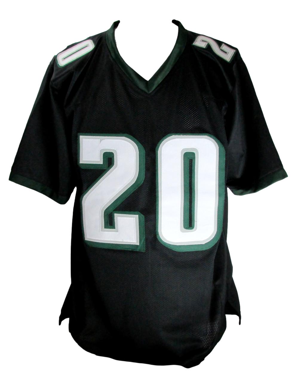Custom on-field style jersey. Everything sewn on, size XL. Hand-signed by Brian Dawkins (HOF).