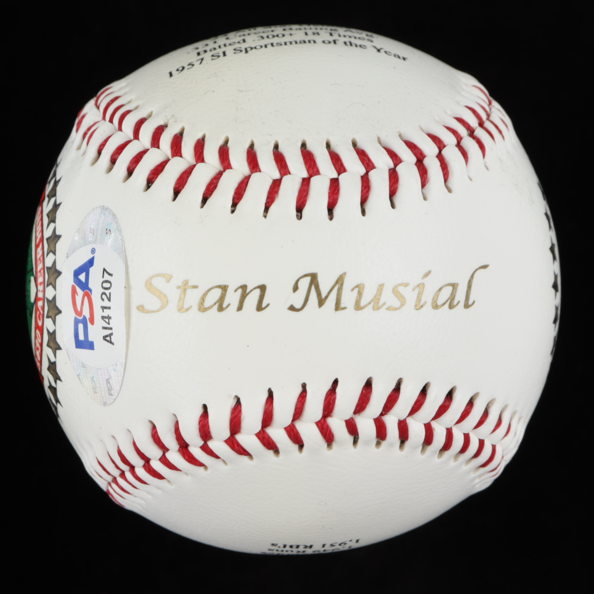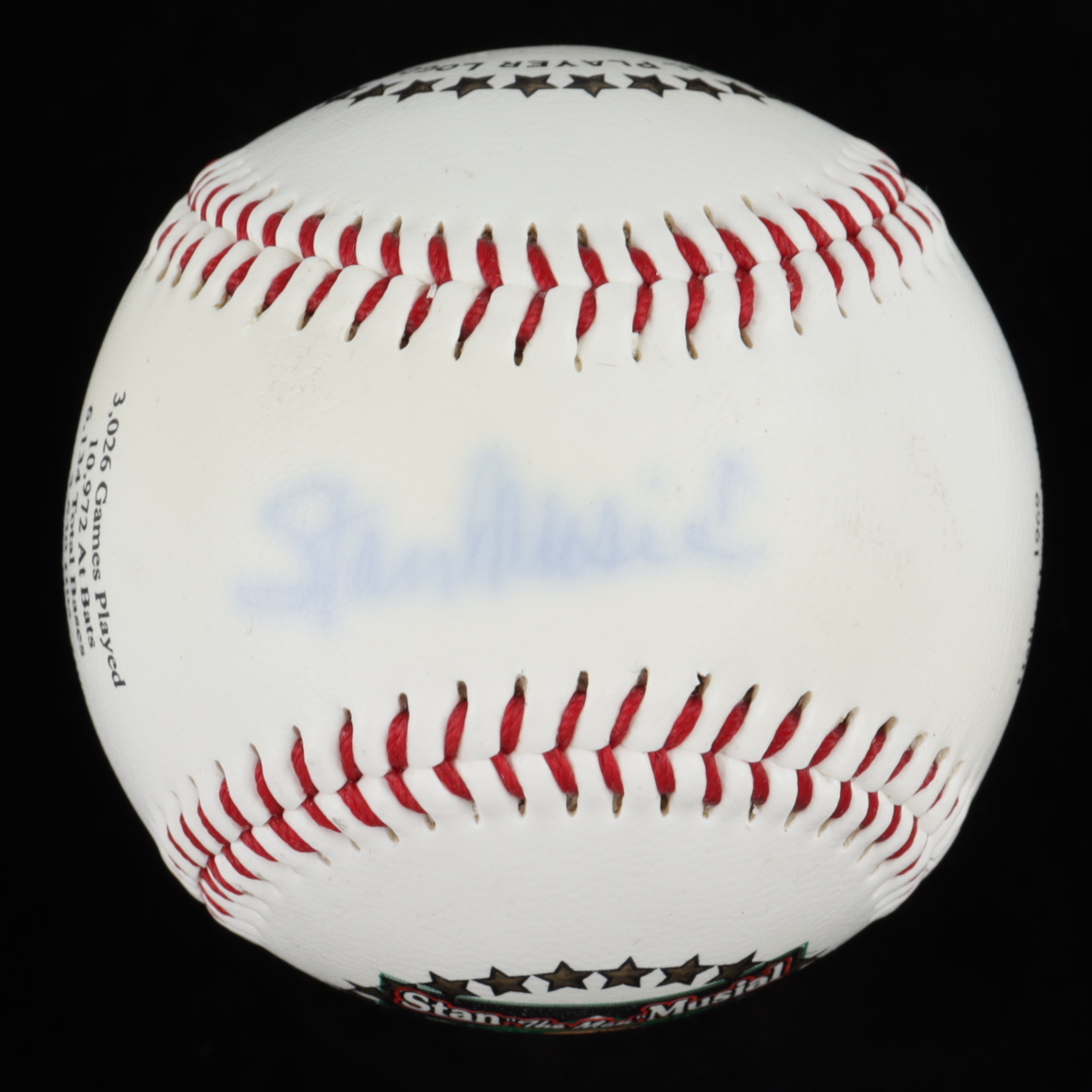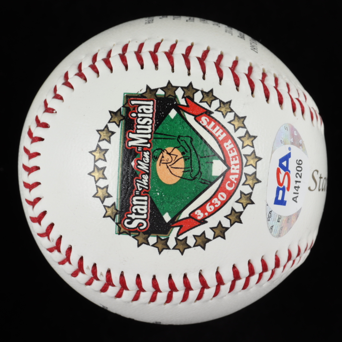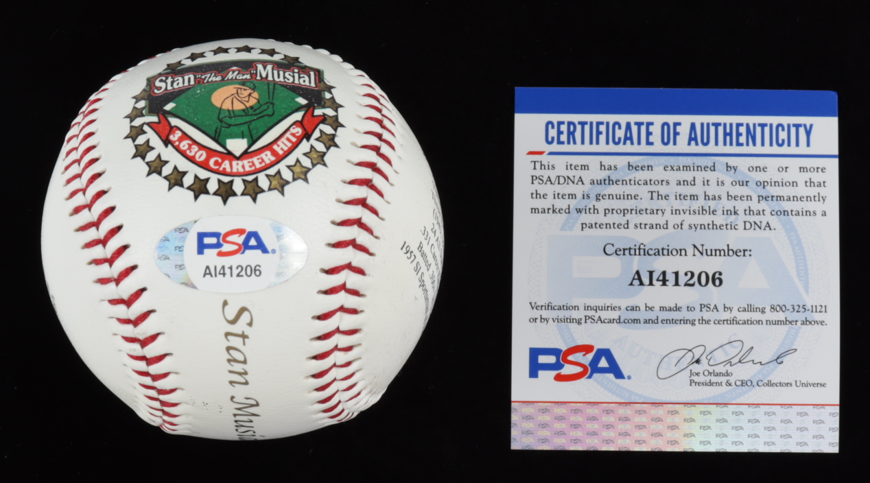 Stan Musial Signed LE Stan Musial Career Stat Logo Baseball (PSA COA)
