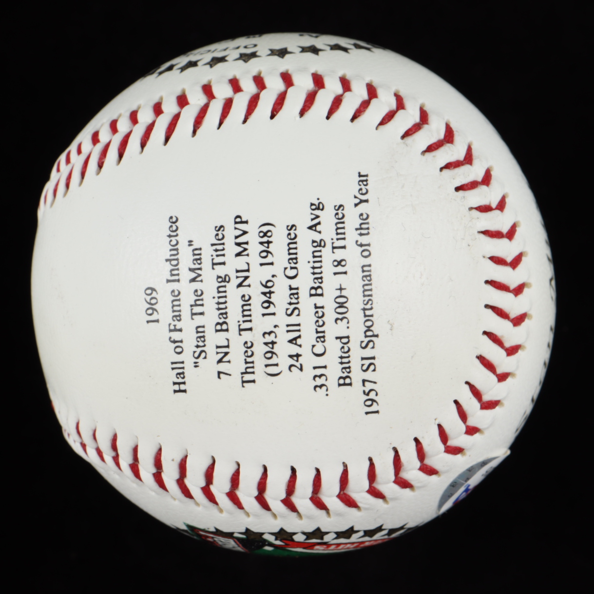 Rawlings Stan Musial Career State Logo Baseball has been hand-signed in blue ink pen by Stan Musial (D. 2013, Cardinals, HOF). Please note baseball is limited edition of #/2,500.