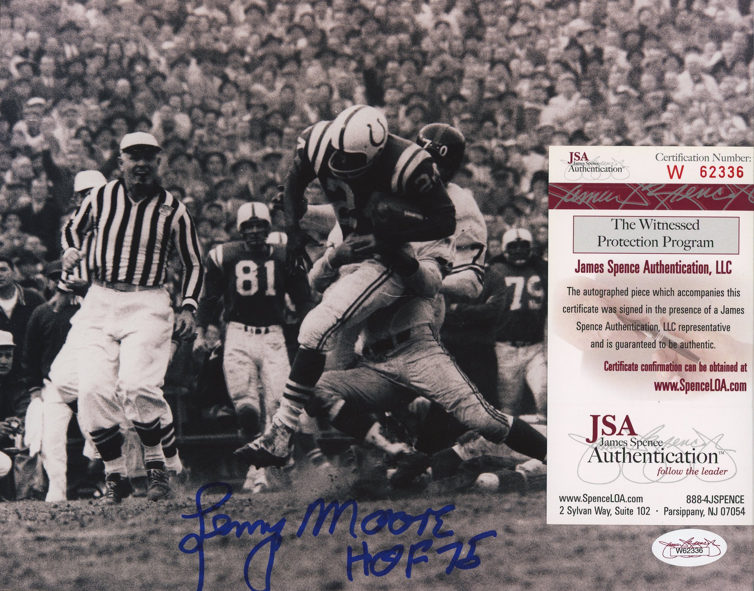 Lenny Moore Signed Colts 8x10 Photo Inscribed "HOF 75" (JSA COA)