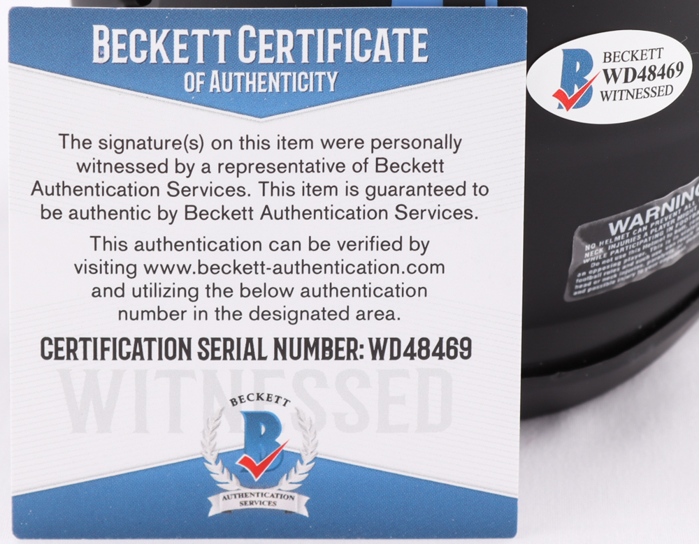 The lot / autograph(s) includes an official Beckett Authentication Services serially-numbered hologram and matching COA for authenticity purposes. The signing of this item was witnessed by Beckett.