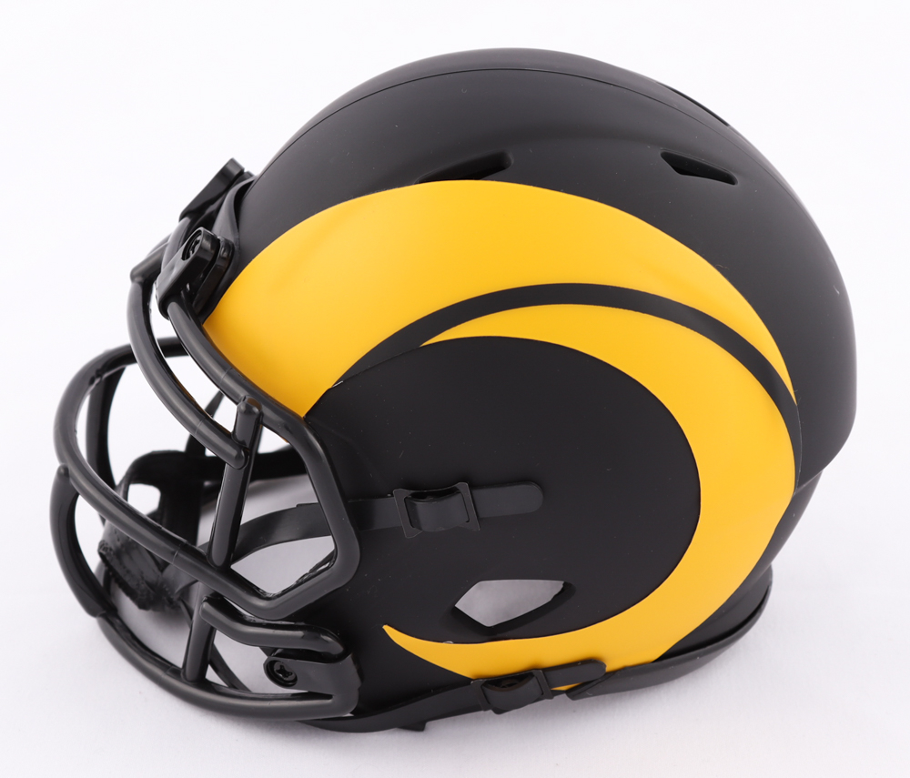 Riddell St. Louis Rams Eclipse Alternate Speed mini helmet. Has been hand-signed and inscribed by Kurt Warner (HOF).