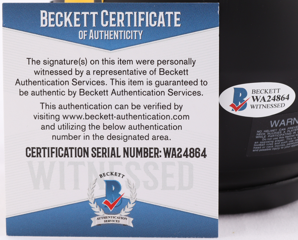 The lot / autograph(s) includes an official Beckett Authentication Services serially-numbered hologram and matching COA for authenticity purposes. The signing of this item was witnessed by Beckett.