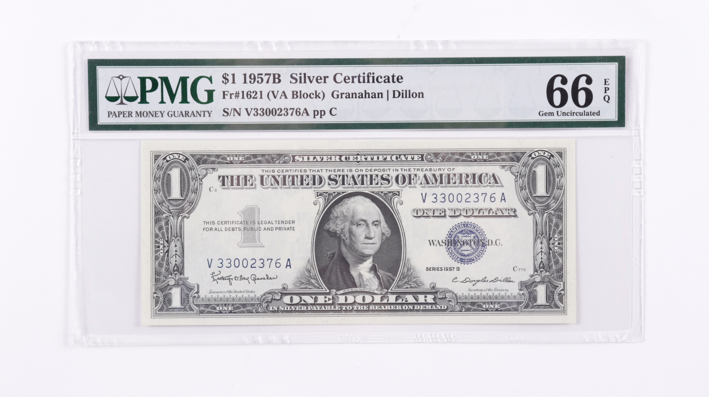 1957-B $1 Blue Seal Silver Certificate Bank Note (PMG Gem Uncirculated 66 EPQ)