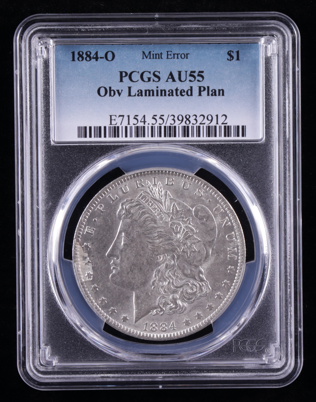 Mint Error - 1884-O Morgan Silver Dollar, Obverse Laminated Planchet (PCGS AU55)