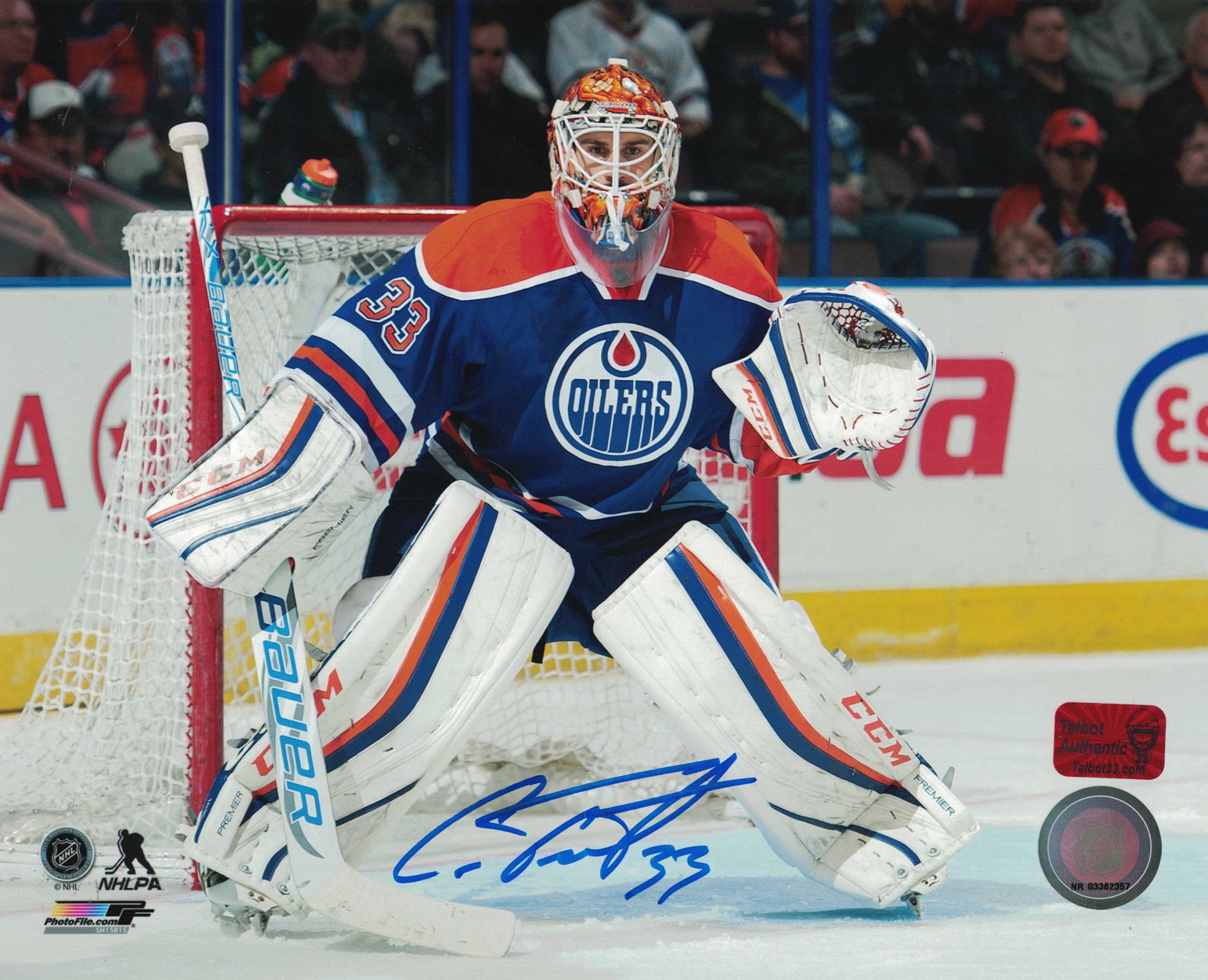 Photo measures 8" x 10" in size and has been hand-signed by Cam Talbot (Edmonton Oilers).
