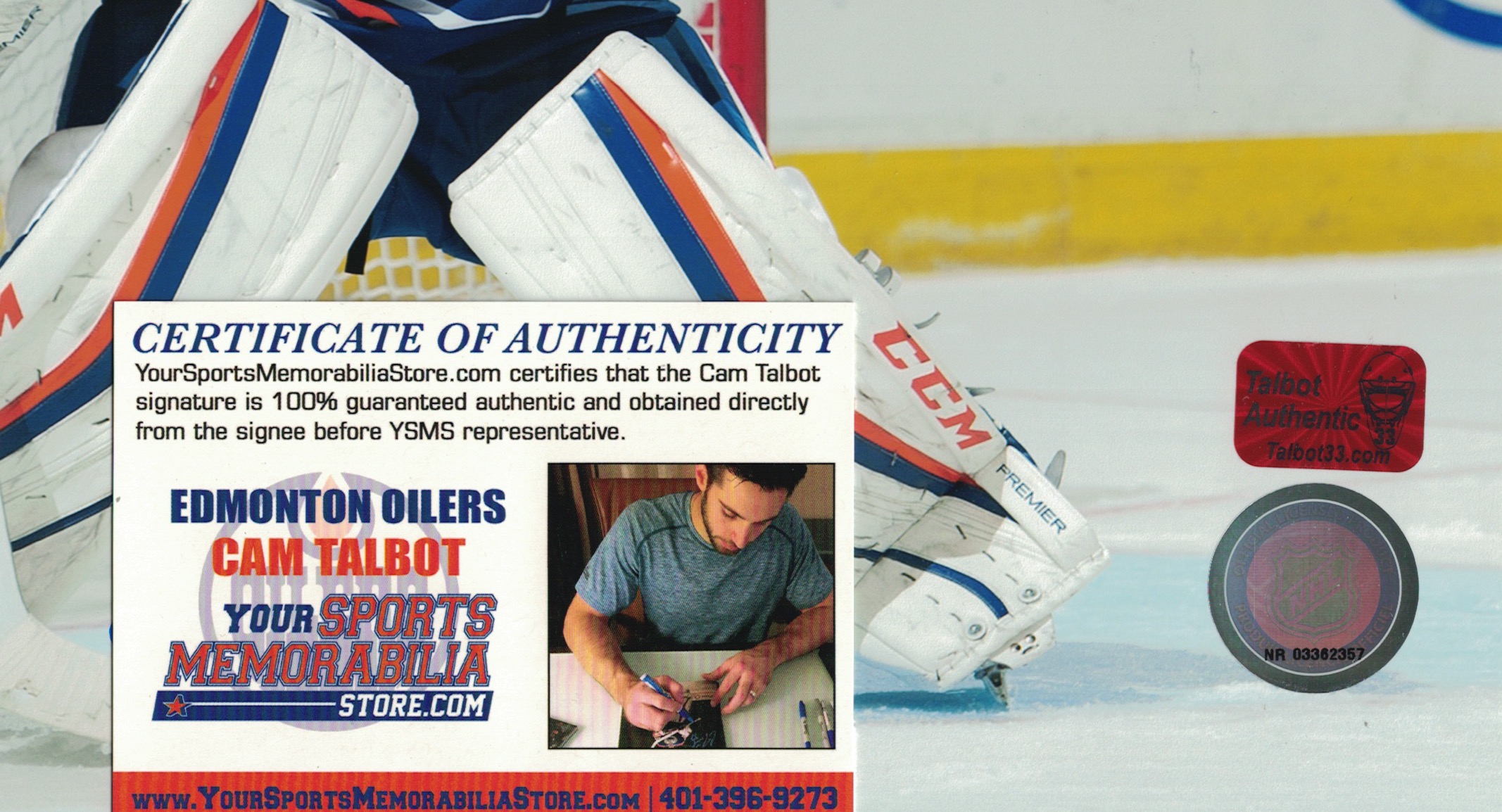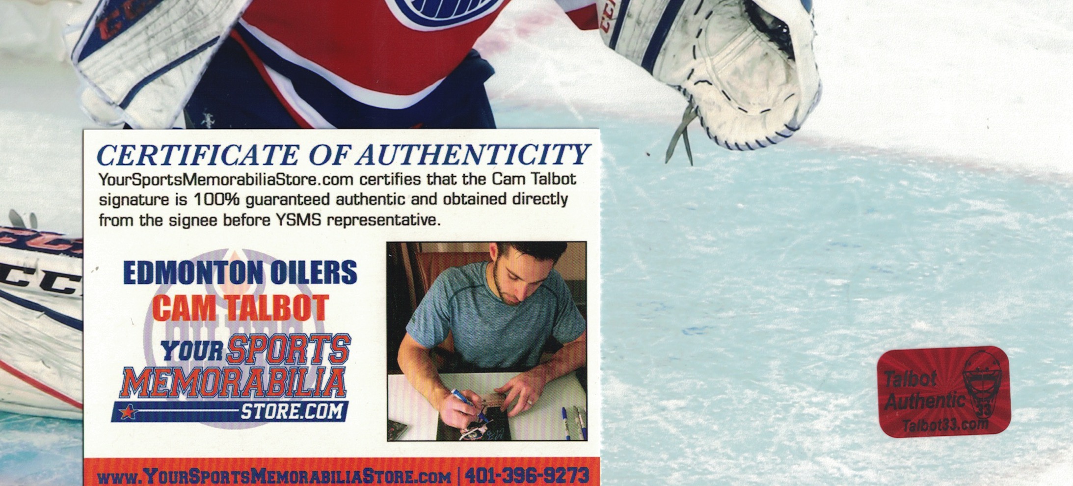 The lot / autograph(s) includes an official Your Sports Memorabilia Store Cam Talbot hologram and COA for authenticity purposes.