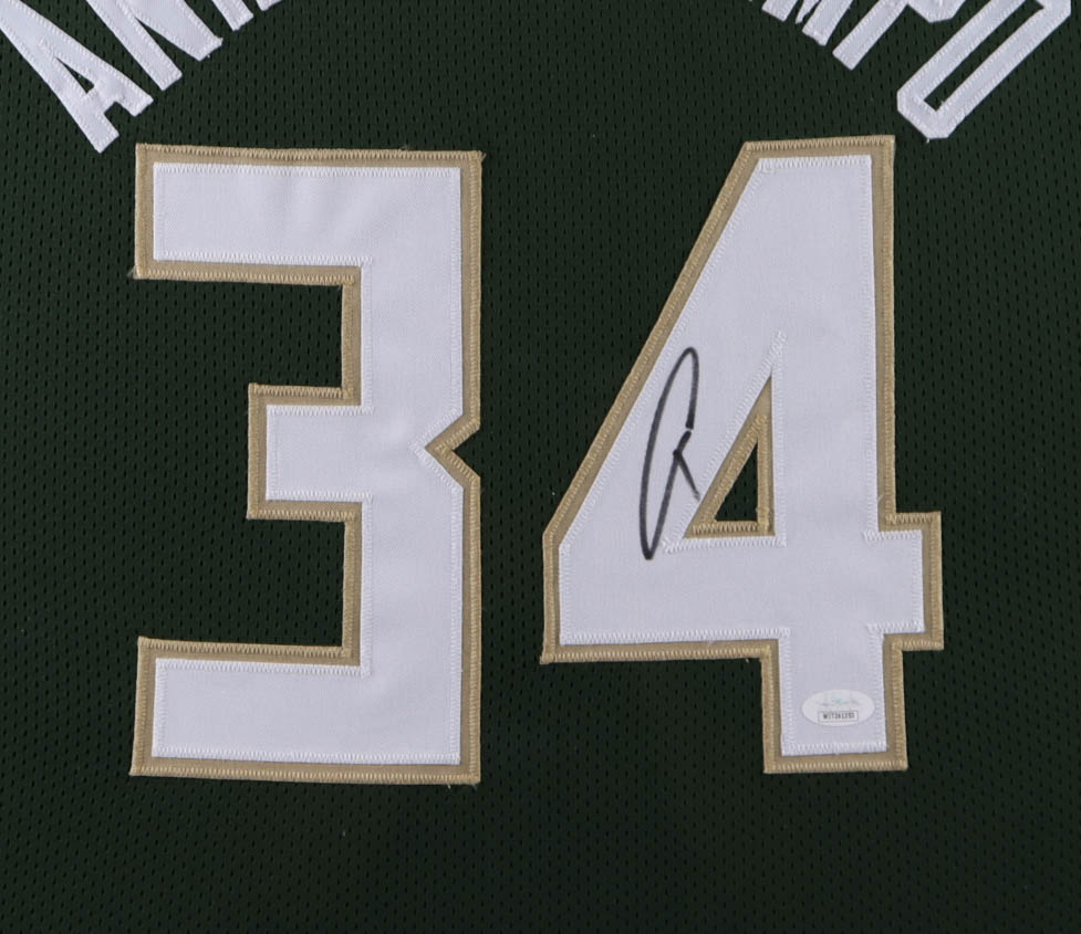 Giannis Antetokounmpo Signed 35x43 Custom Framed Jersey Display (JSA COA)