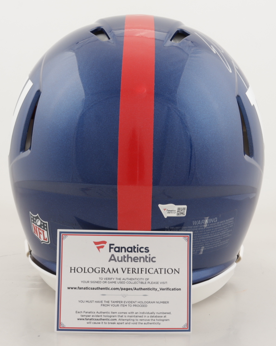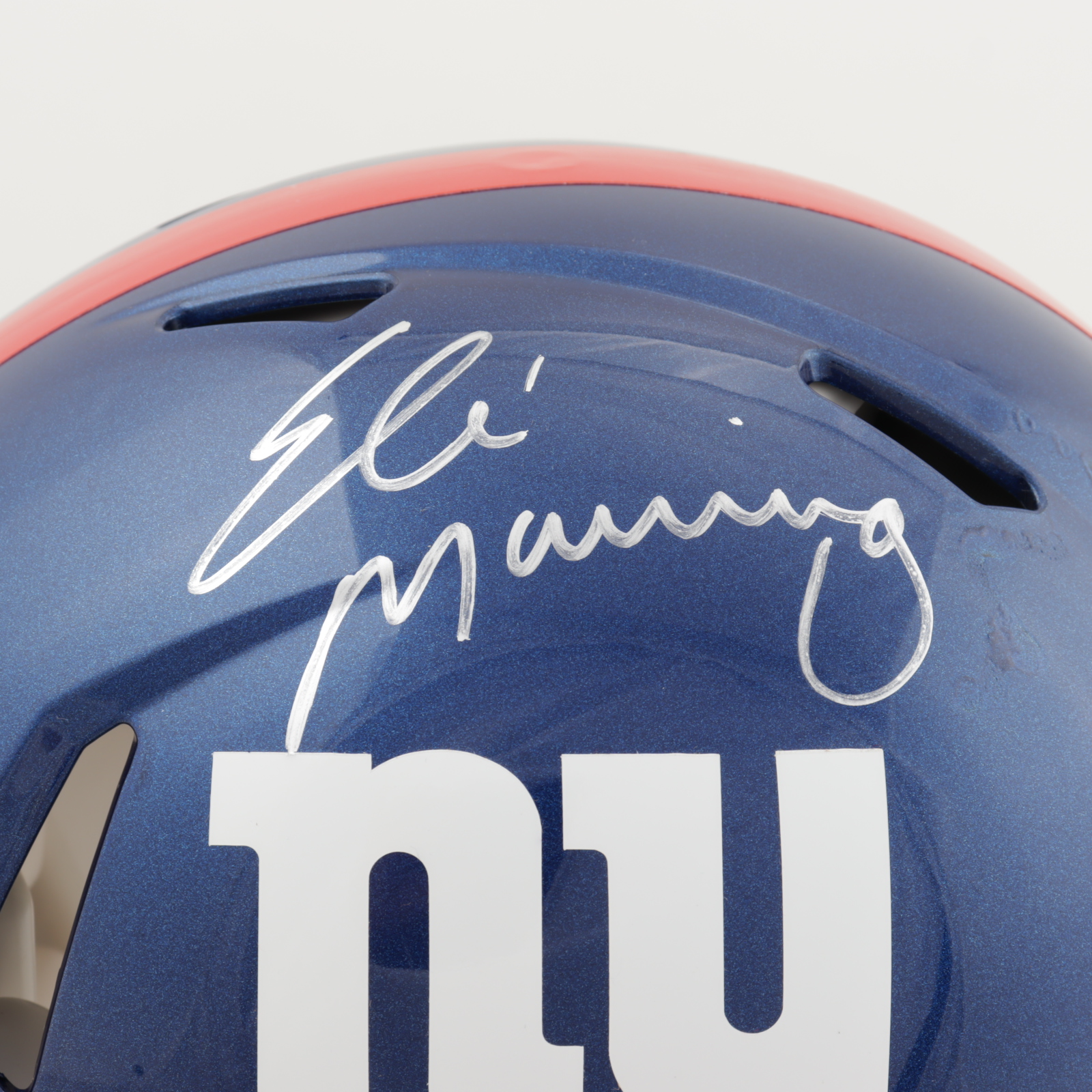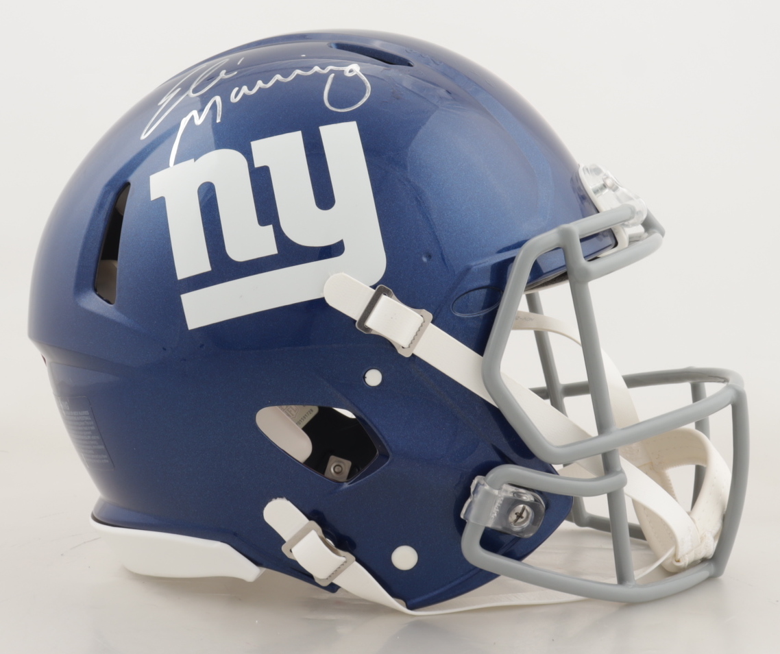 Riddell New York Giants full-size authentic on-field speed helmet. Hand-signed by Eli Manning. Please note, top of the helmet has imperfections. See photos for details.