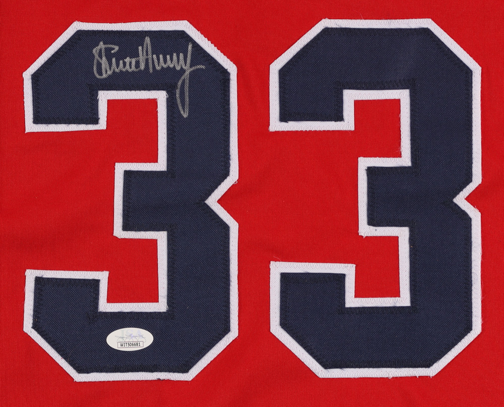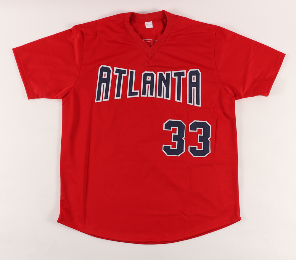 Custom on-field style jersey. Everything sewn on, size XL. Hand-signed by Steve Avery.