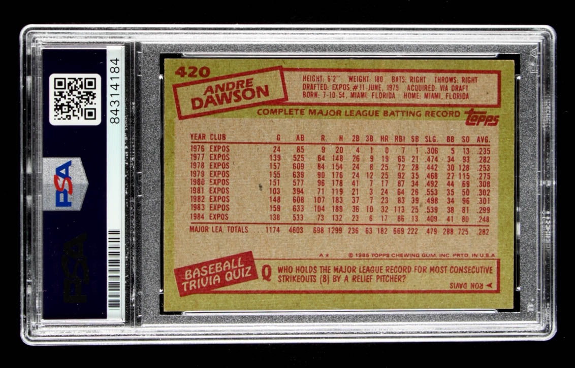 Andre Dawson Signed 1985 Topps #420 (PSA Encapsulated)