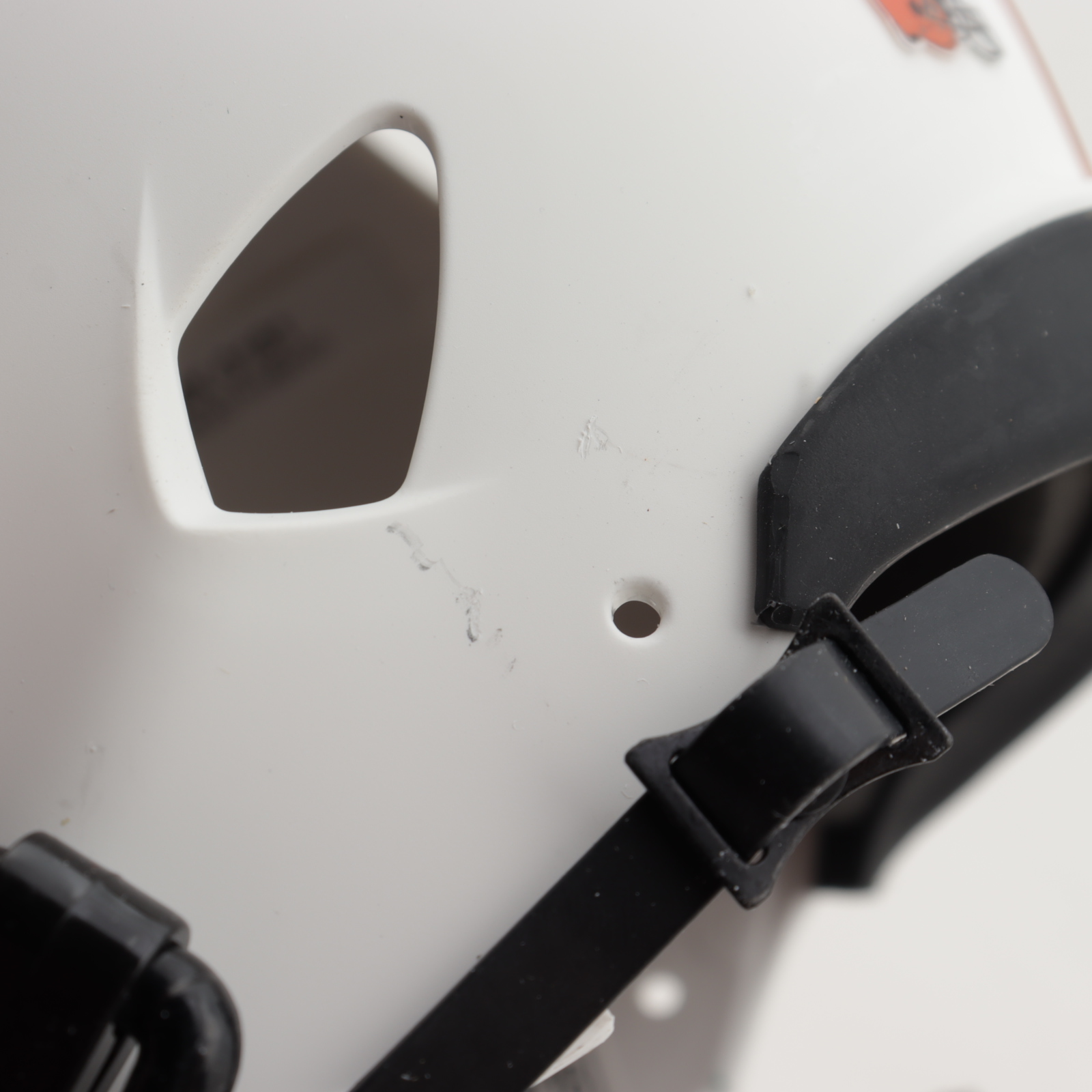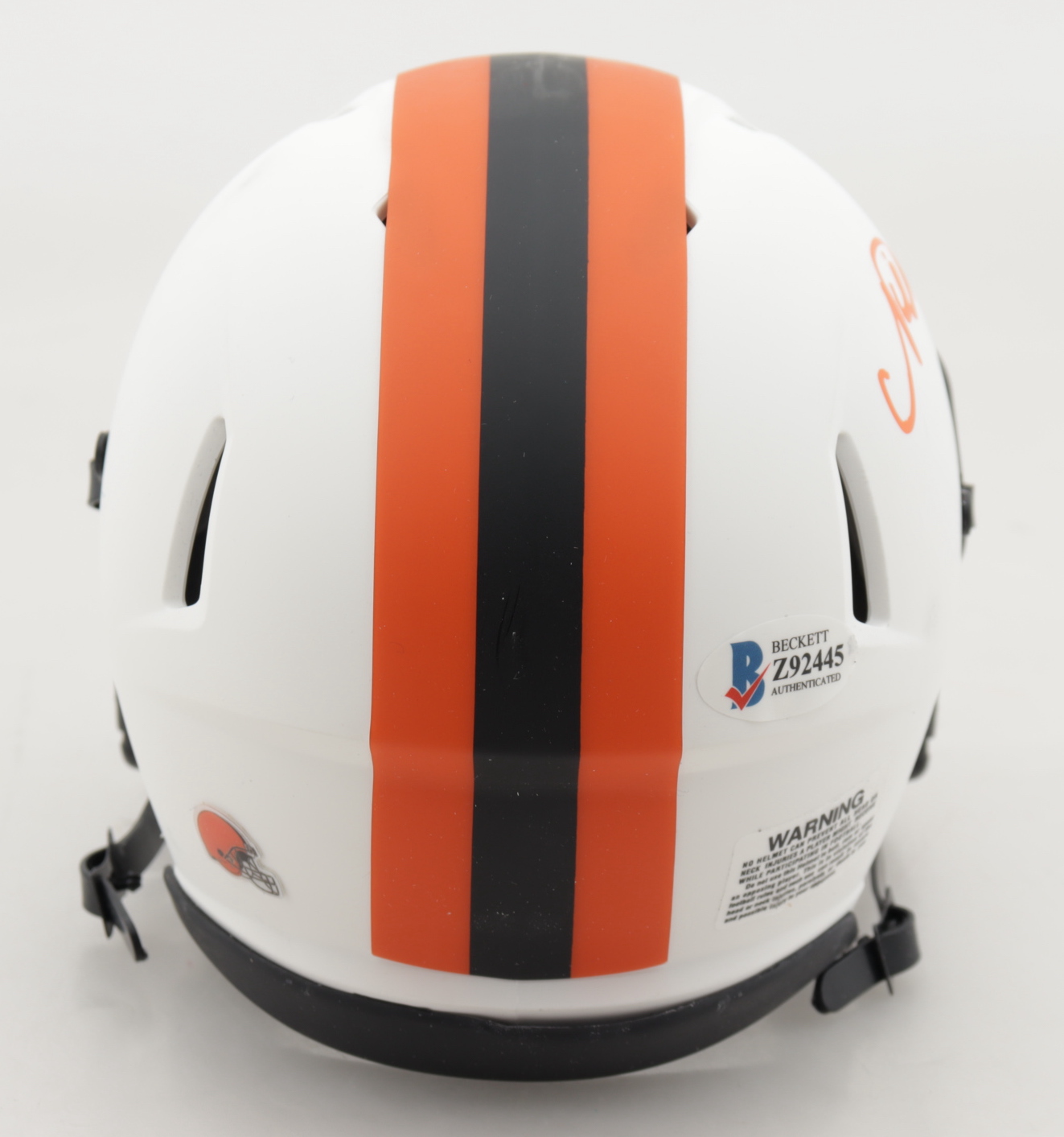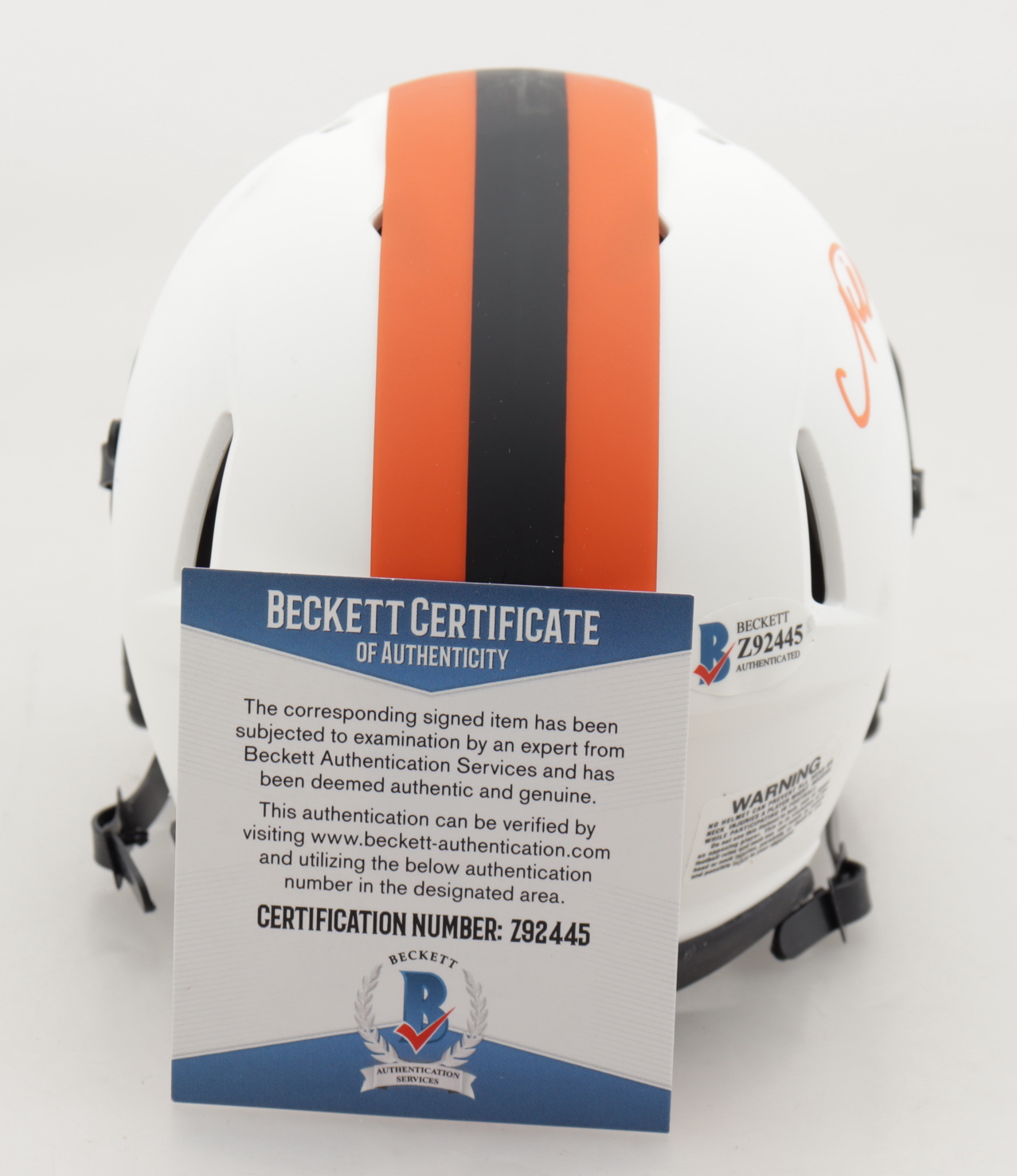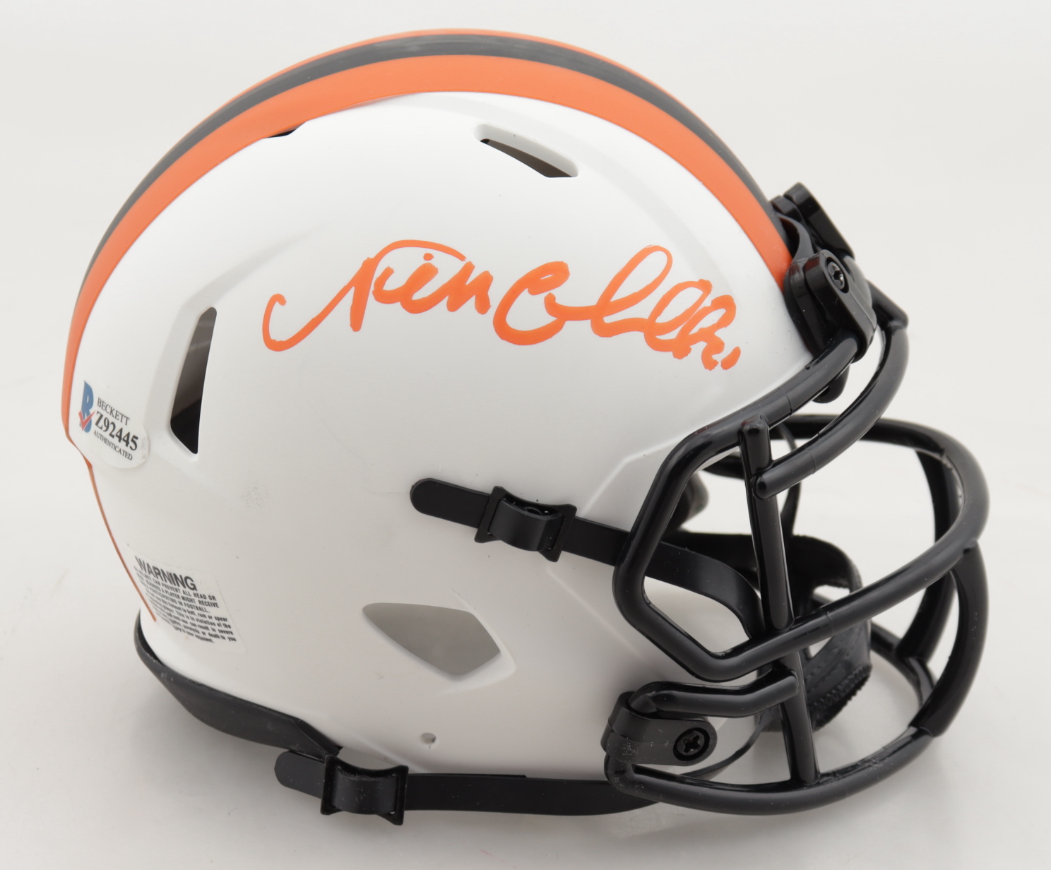 Riddell Cleveland Browns lunar eclipse alternate speed mini helmet. Hand-signed by Nick Chubb. Please note, the helmet shows signs of imperfection.