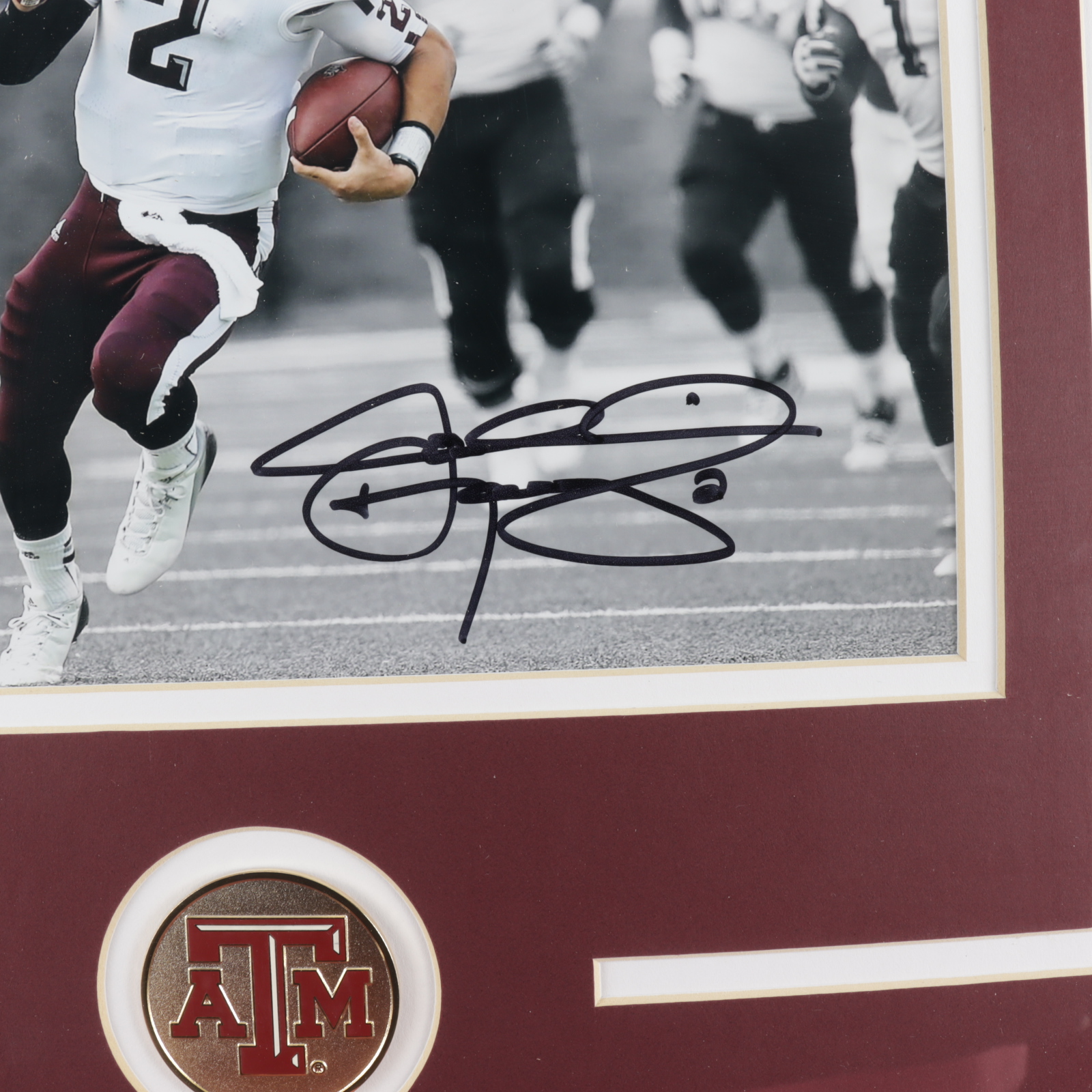 Custom frame measures 16.5" x 16.5" in size and features a photo that has been hand-signed by Johnny Manziel.