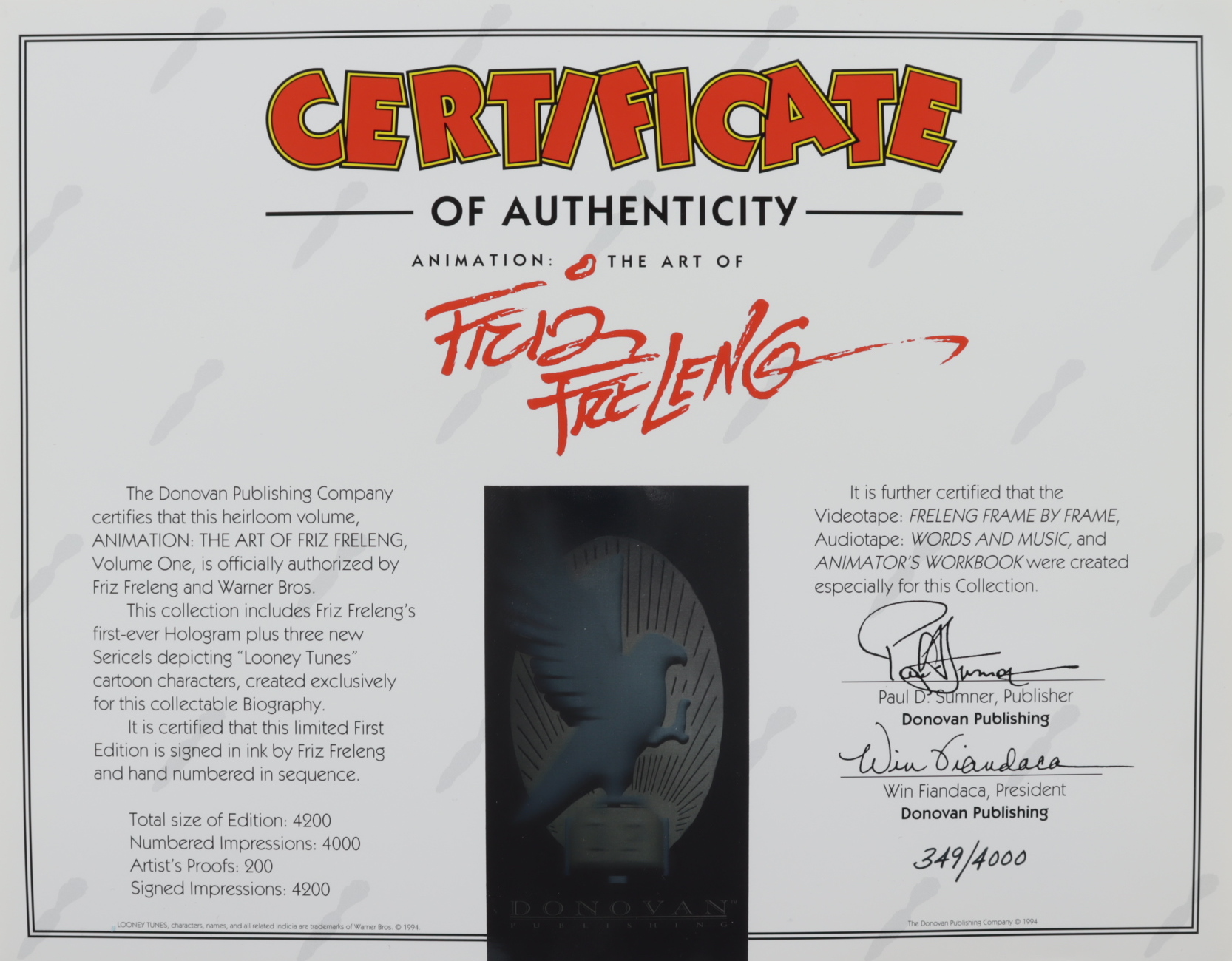 Friz Freleng Signed LE "Animation: The Art of Friz Freleng Volume One"