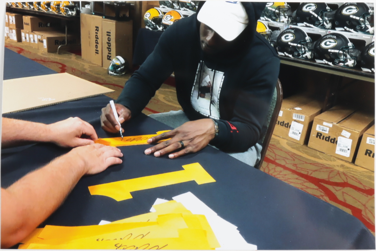 Custom on-field style jersey. Everything is sewn on, size XL. Hand-signed by Davante Adams. Please note, jersey numbers on the back are two different shades. See photos for details.