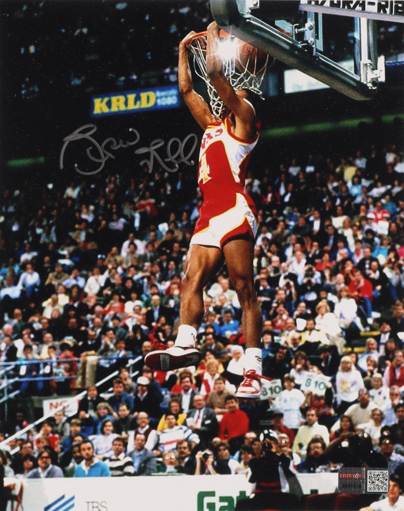 Photo measures 8" x 10" in size and has been hand-signed by Spud Webb (Atlanta Hawks).