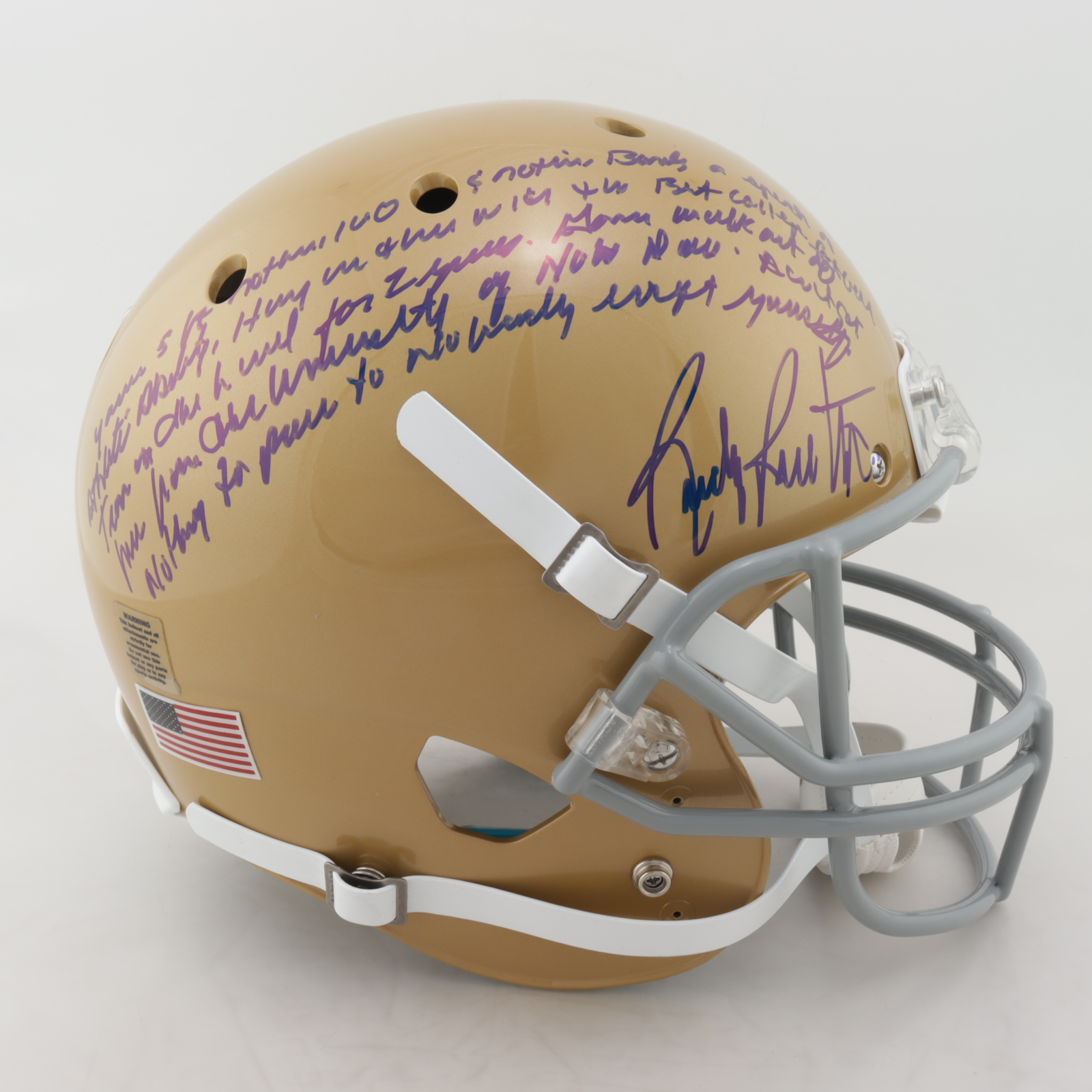 Rudy Ruettiger Signed Notre Dame Fighting Irish Full-Size Helmet with Extensive Inscription (Ruettiger Hologram)