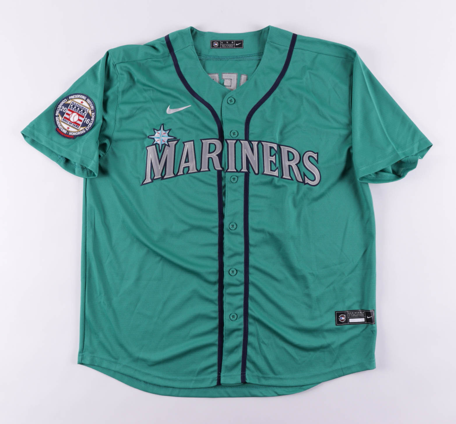 Nike on-field style jersey. Everything is sewn on, size XL. Has been hand-signed by Ken Griffey Jr. (Seattle Mariners, HOF)