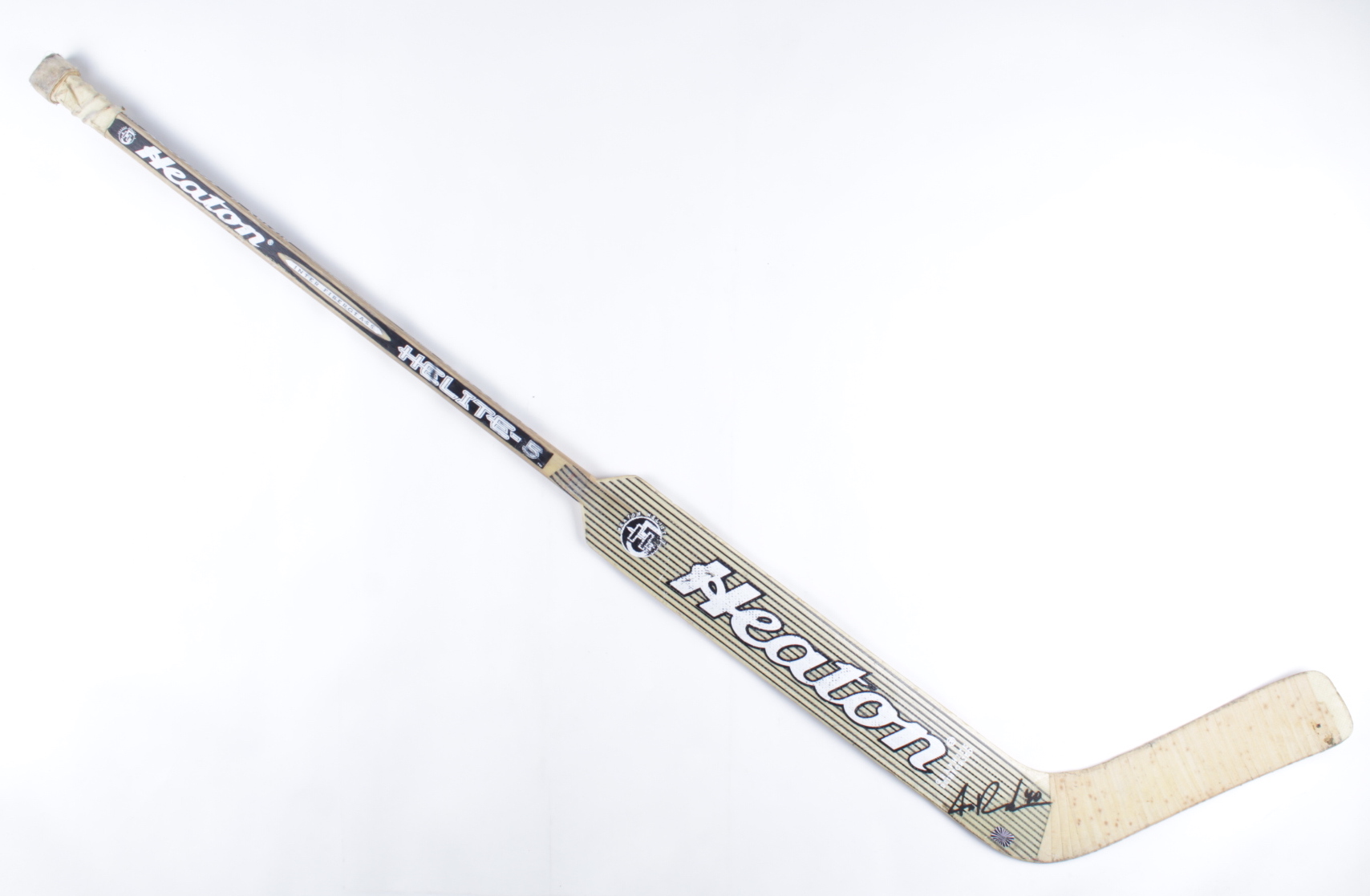 Heaton full-size goalie stick. Hand-signed by Tuukka Rask (Boston Bruins). The hockey stick has been game-used by an unknown player.