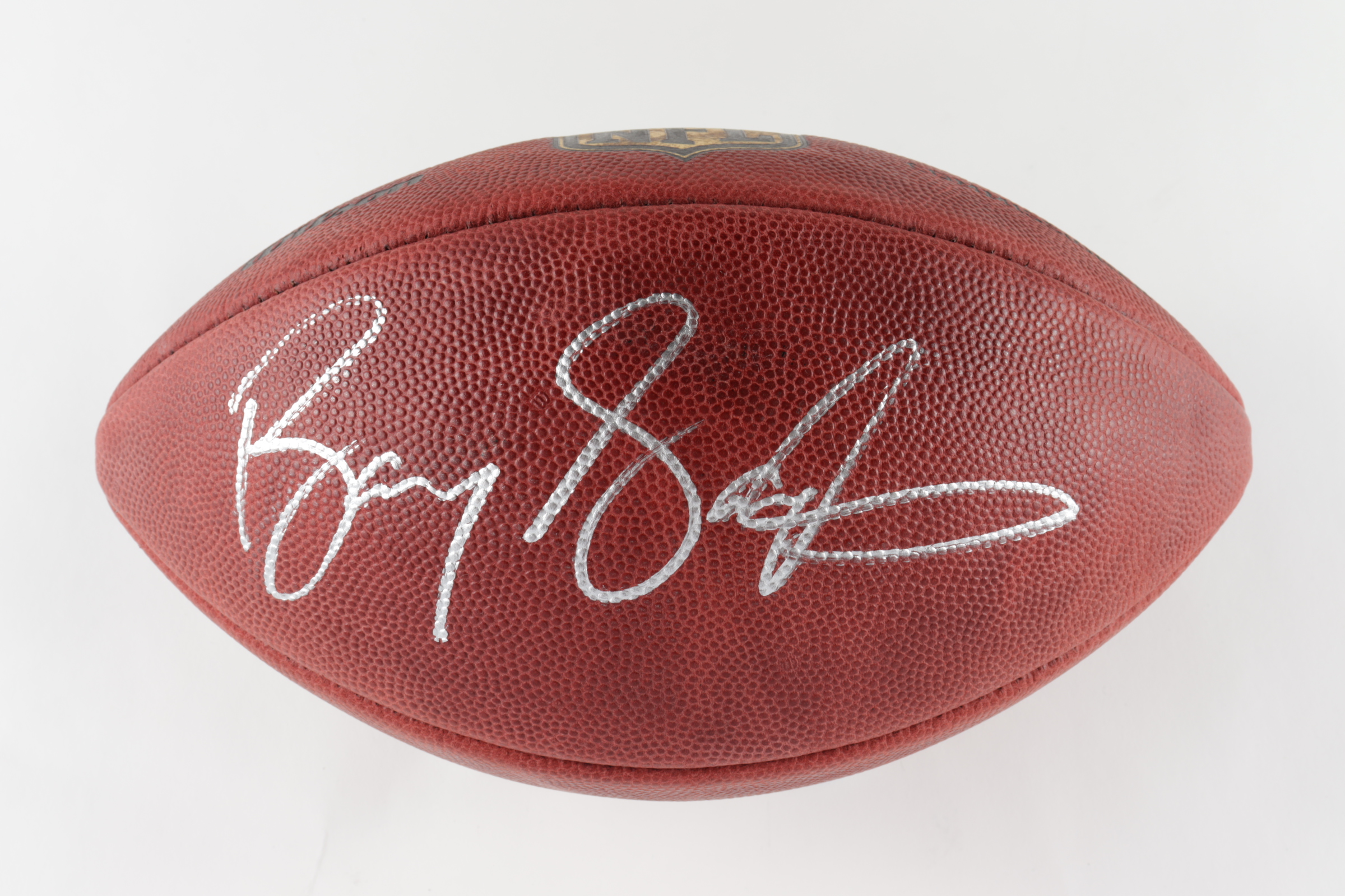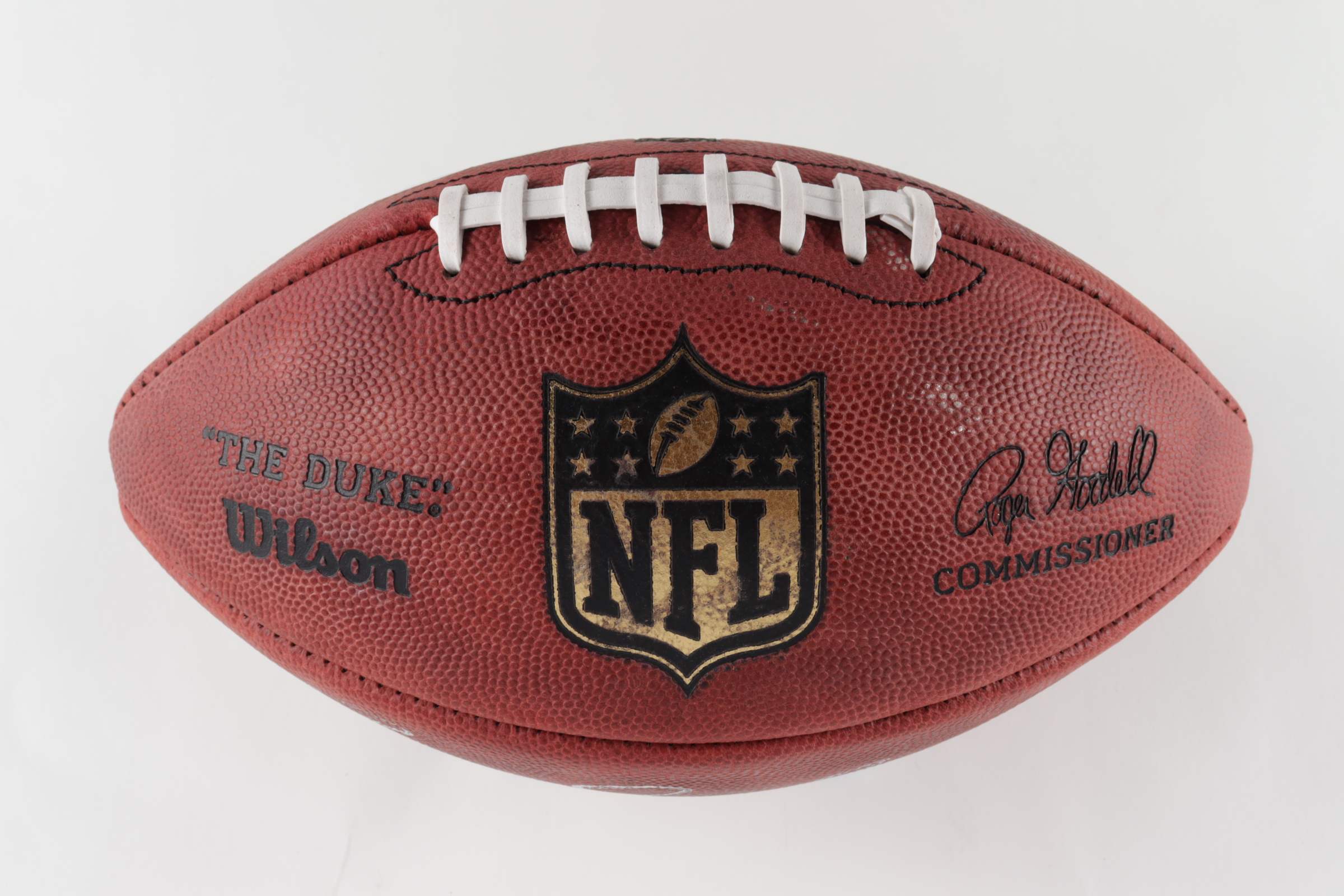 Wilson "The Duke" football has been hand-signed by Barry Sanders (HOF). Please note, football shows slight wear.