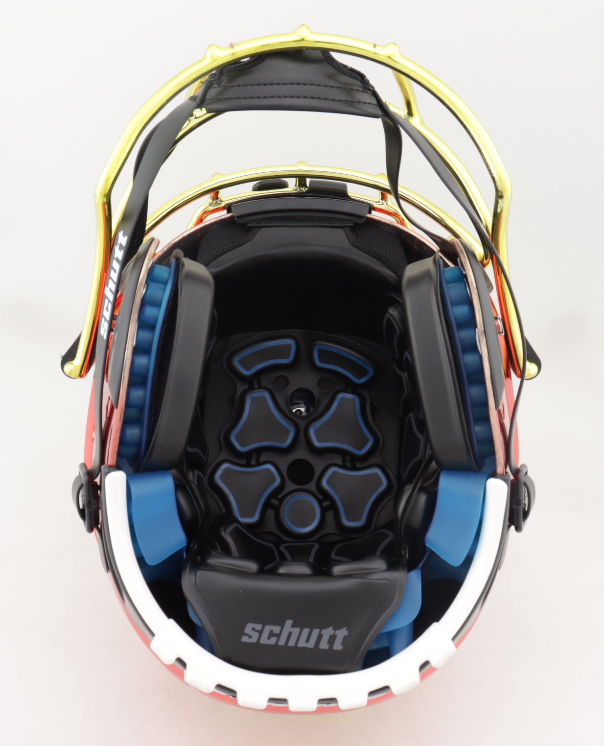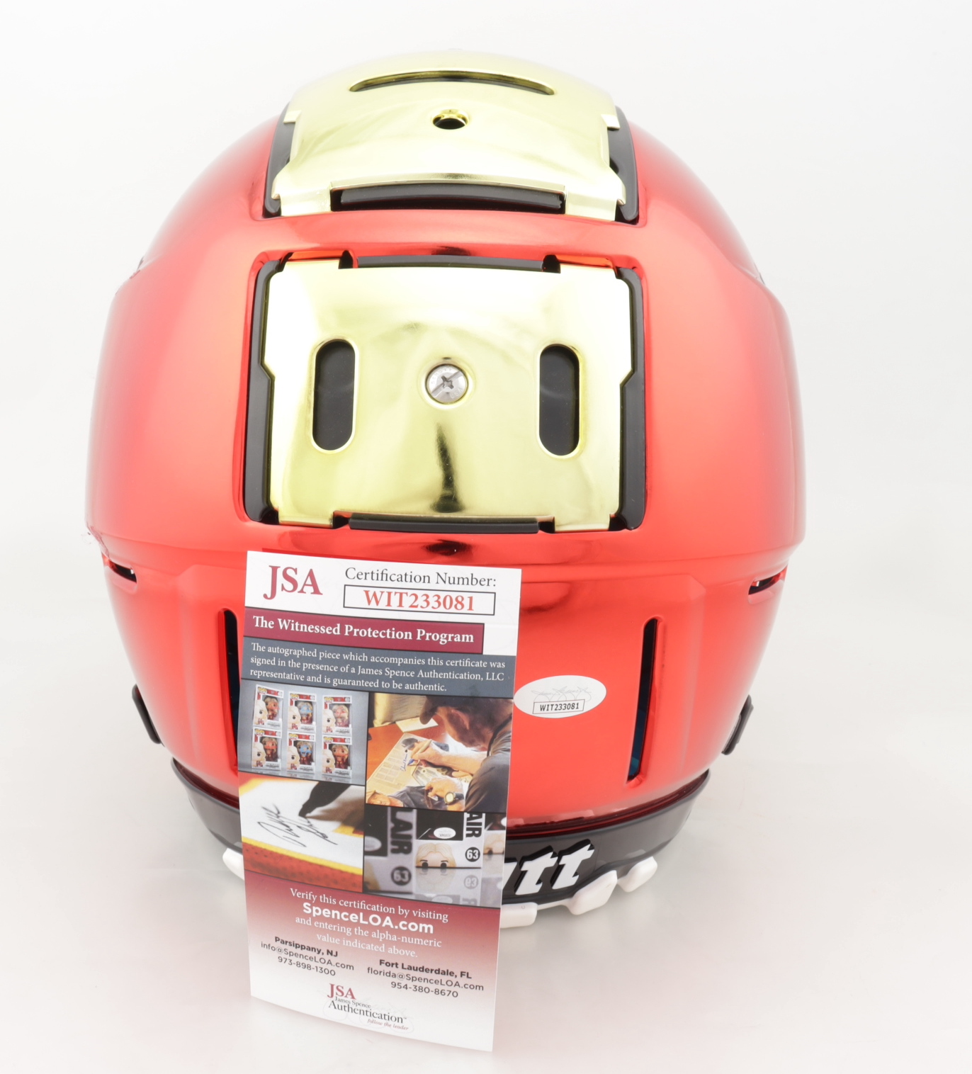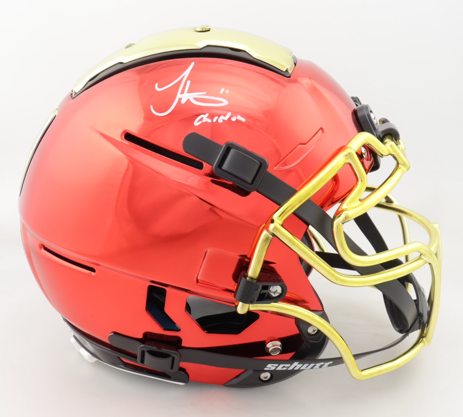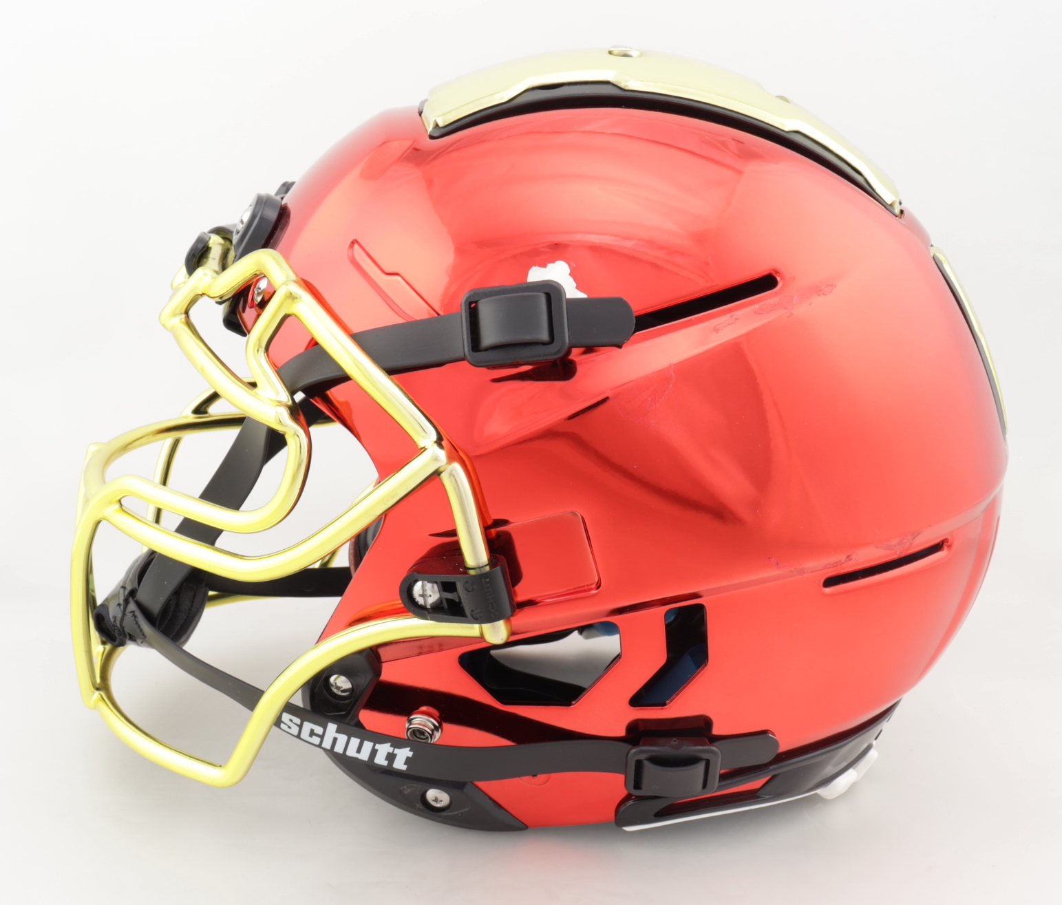 Schutt full-size authentic on-field chrome F7 helmet. Hand-signed by Tyreek Hill. Please note, helmet shows some wear.