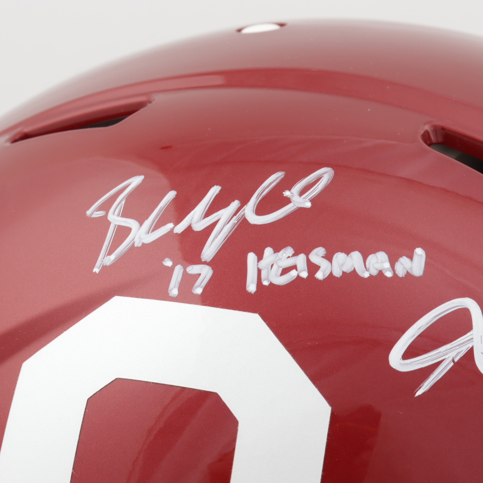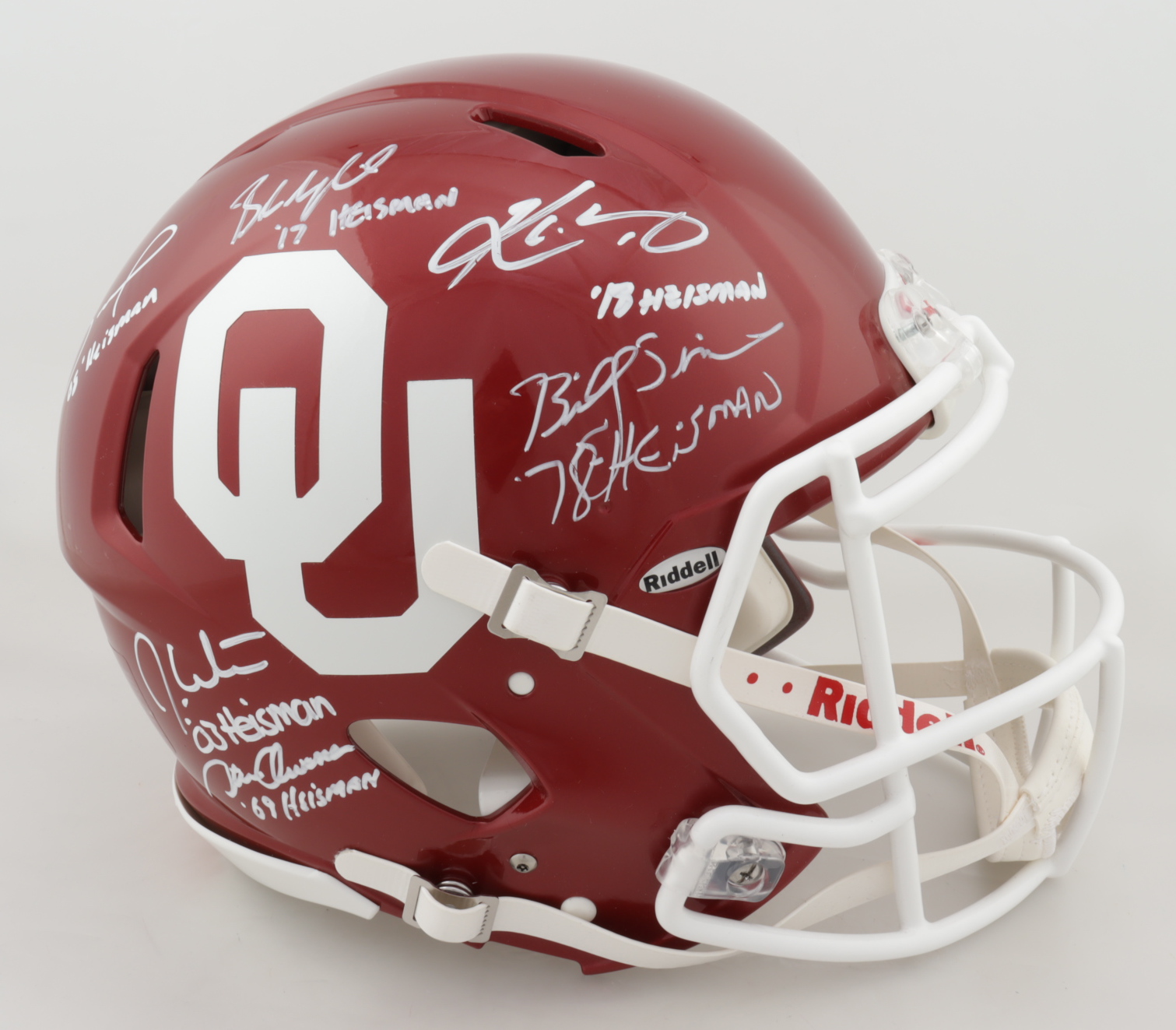 Oklahoma Sooners Heisman Winners Full-Size Authentic On-Field Speed Helmet Signed by (6) with Kyler Murray, Billy Sims, Baker Mayfield, Sam Bradford, Jason White & Steve Owens with Heisman Inscriptions (Beckett COA & JSA ALOA) (See Description)