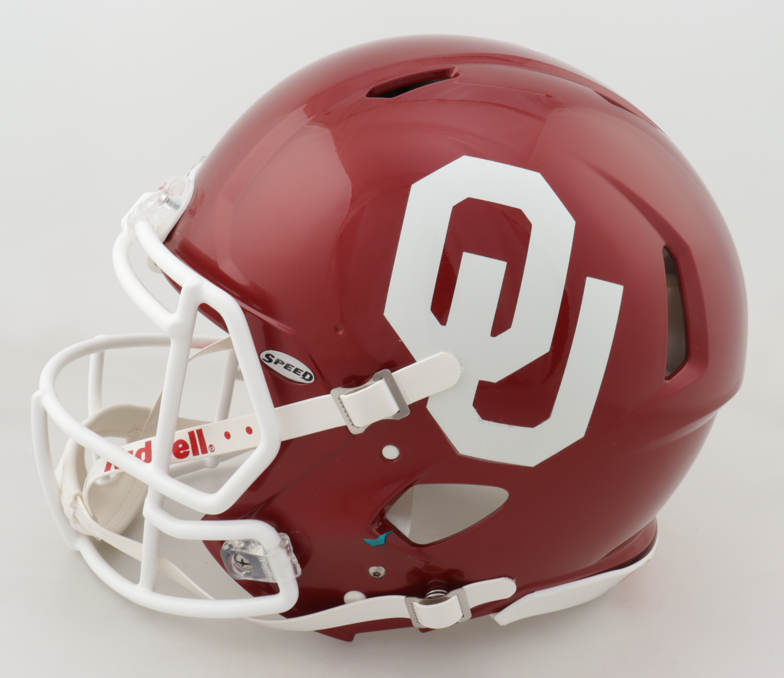 Riddell Oklahoma Sooners full-size authentic on-field helmet. Hand-signed and inscribed by Kyler Murray, Billy Sims, Baker Mayfield, Sam Bradford, Jason White, and Steve Owens. Please note, see images regarding condition of helmet.