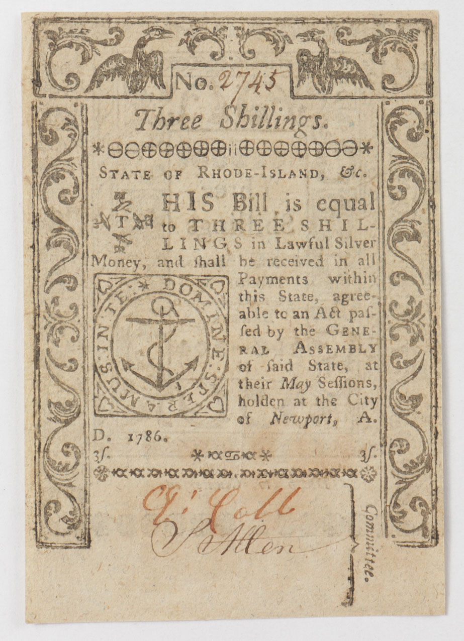 1786 3s. Three Shillings - Rhode Island - Colonial Currency Note