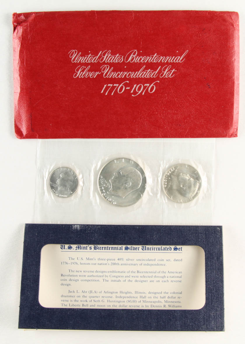 1776-1976 United States Bicentennial Silver Uncirculated Set with (3) Coins with Original Packaging