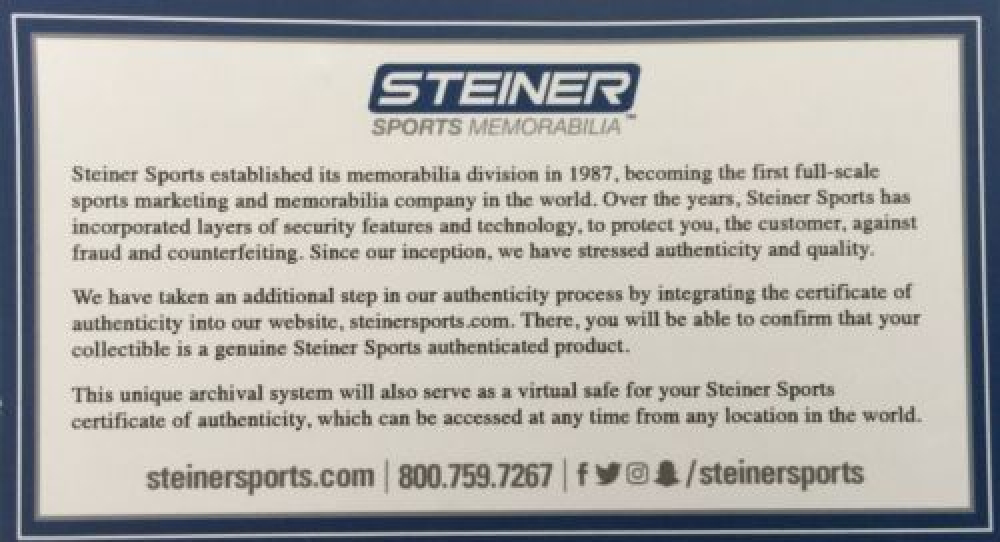 The lot / autograph(s) includes an official Steiner Sports hologram and matching COA for authenticity purposes. Authentication: Steiner COA