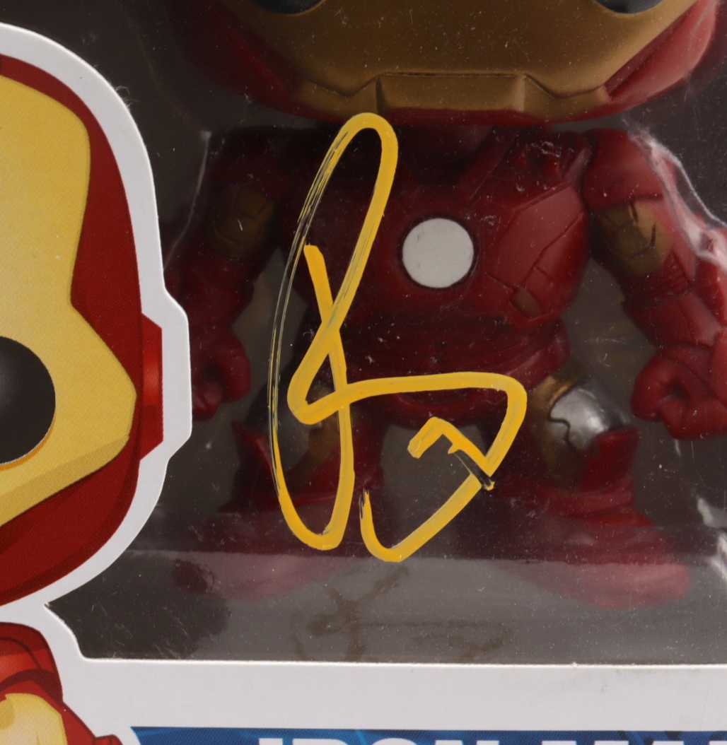 Figure measures approximately 4" tall and comes in the original box. Hand-signed by Robert Downey Jr.