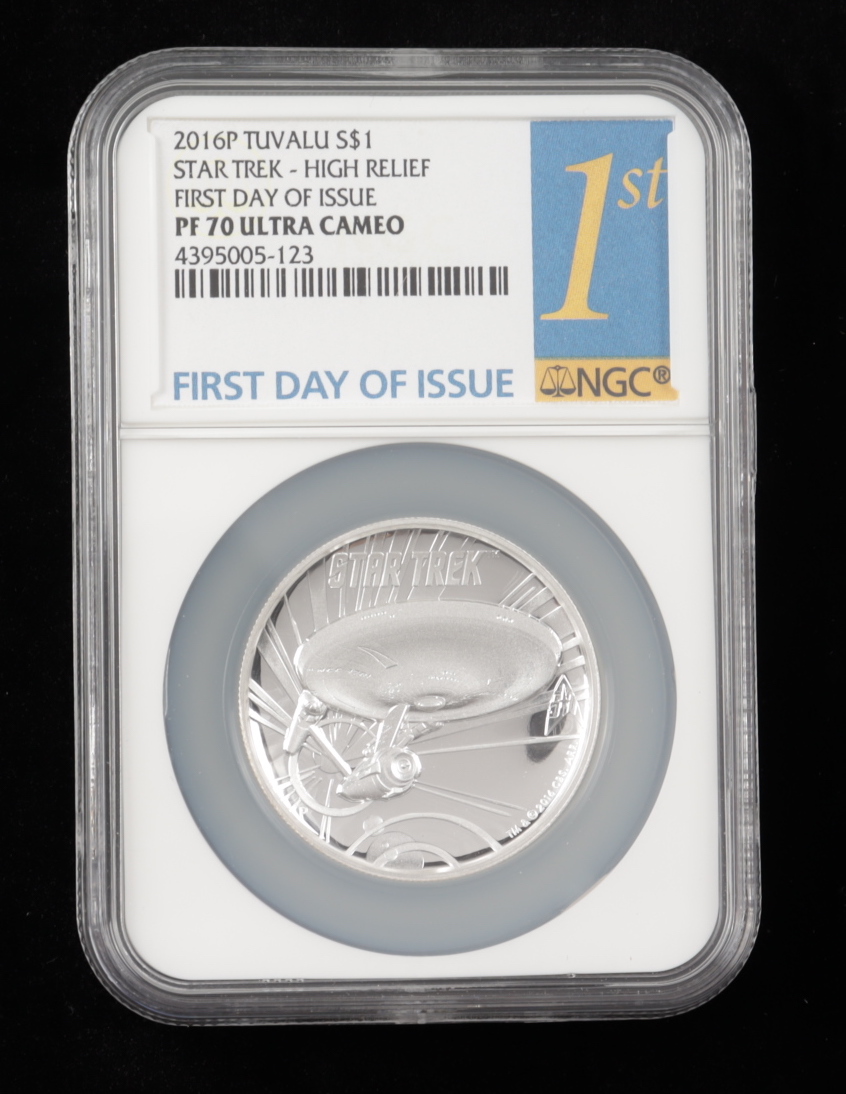 2016-P Tuvalu Star Trek Enterprise Ship 1 oz .999 Fine Silver High Relief Coin - First Day of Issue (NGC PF70 Ultra Cameo)