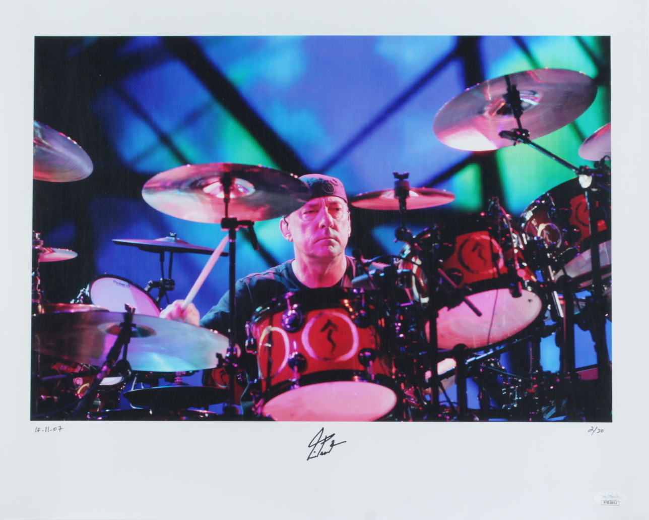 Neal Peart Signed LE Rush 16x20 Photo Inscribed "10-11-07" (JSA COA)