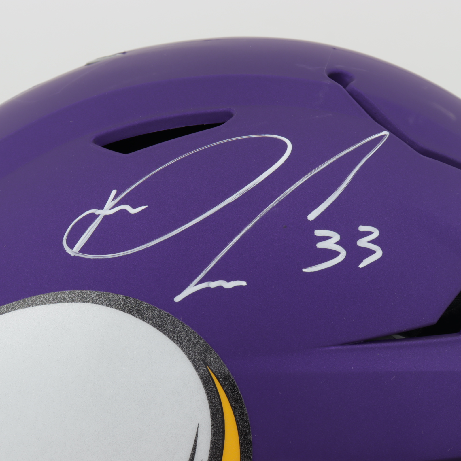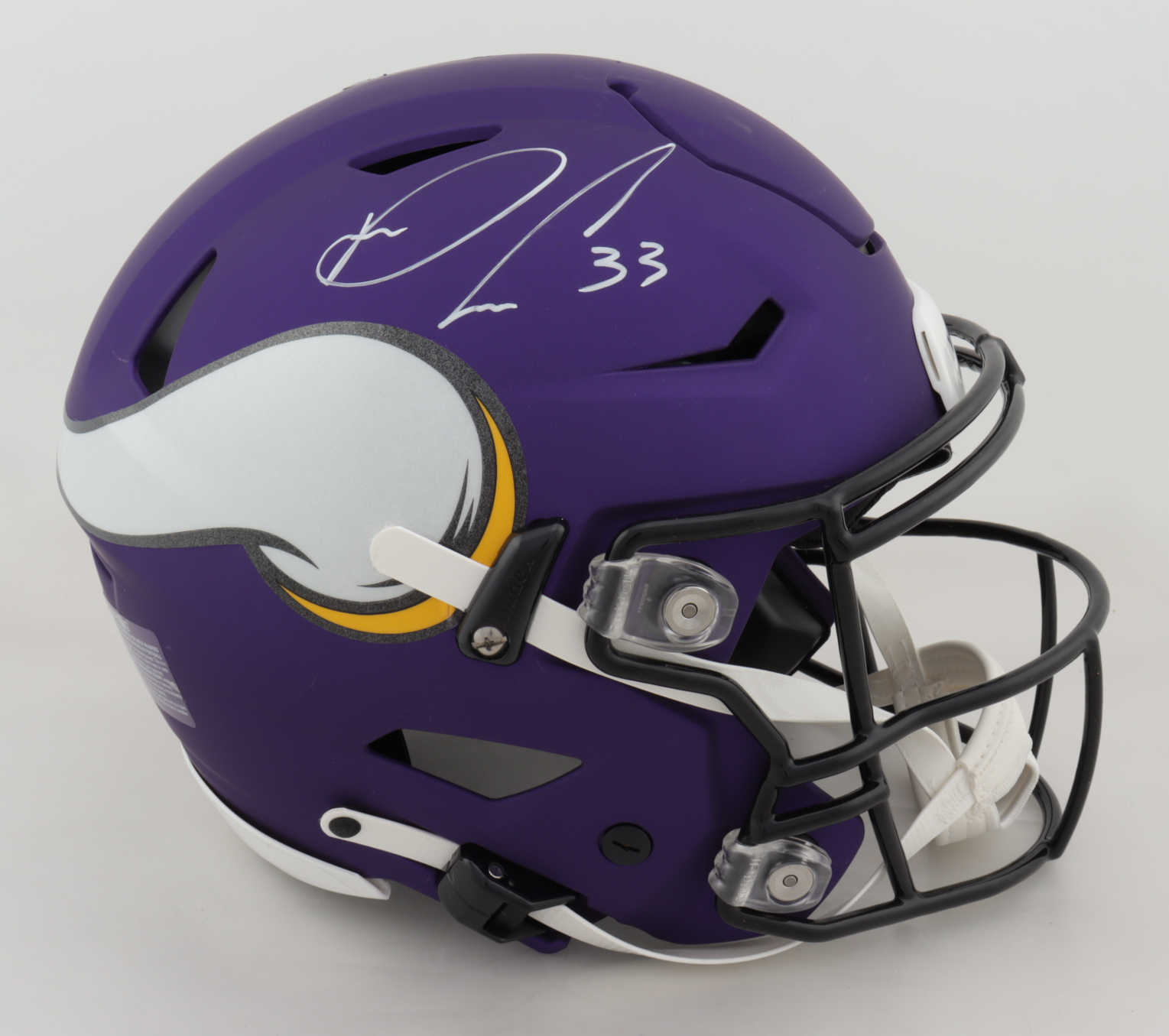 Riddell Minnesota Vikings full-size authentic on-field matte purple SpeedFlex helmet. Hand-signed by Dalvin Cook. Please see images regarding condition of helmet.