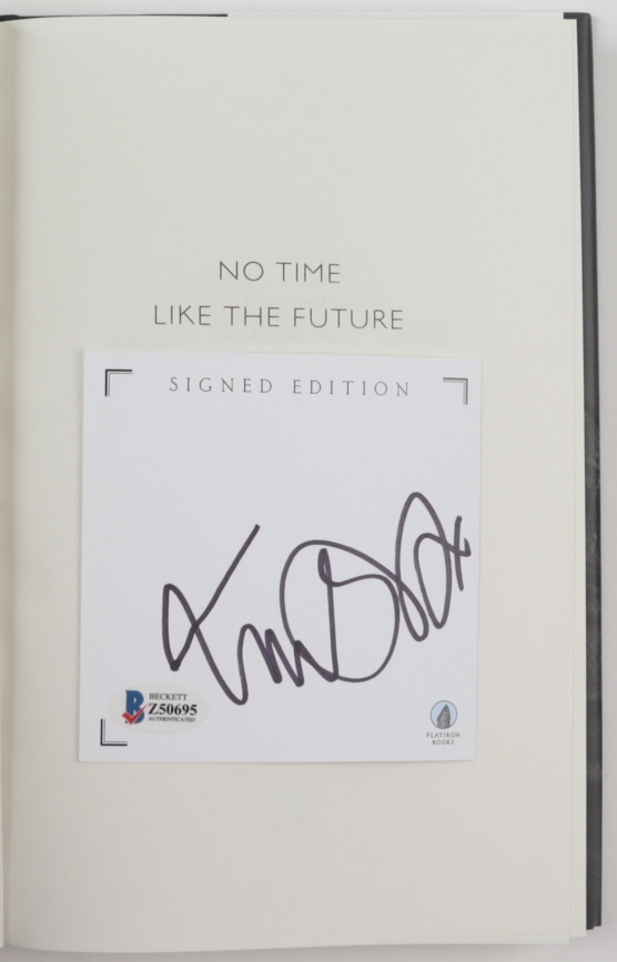 Cut measures 4" x 4" in size and has been hand signed by Michael J. Fox. "No Time Like The Future" Hardcover Book is also included.