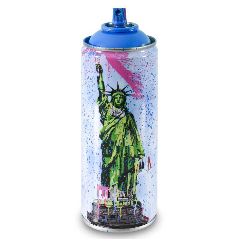 "Liberty (Cyan)" is a limited edition hand painted spray can by Mr Brainwash, numbered 125/150 and bearing the thumbprint of the artist. This piece is from Mr Brainwash's 2020 Classic Spray Can Collection. Measures approx. 2.5" x 7.5".