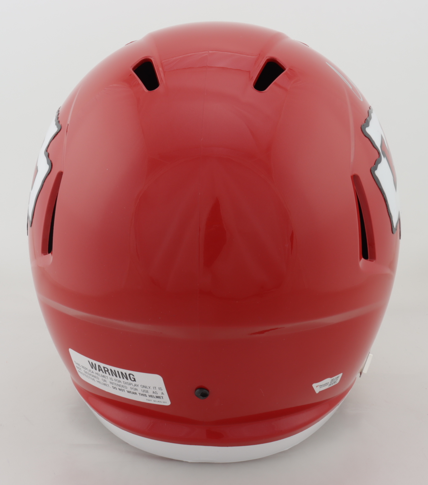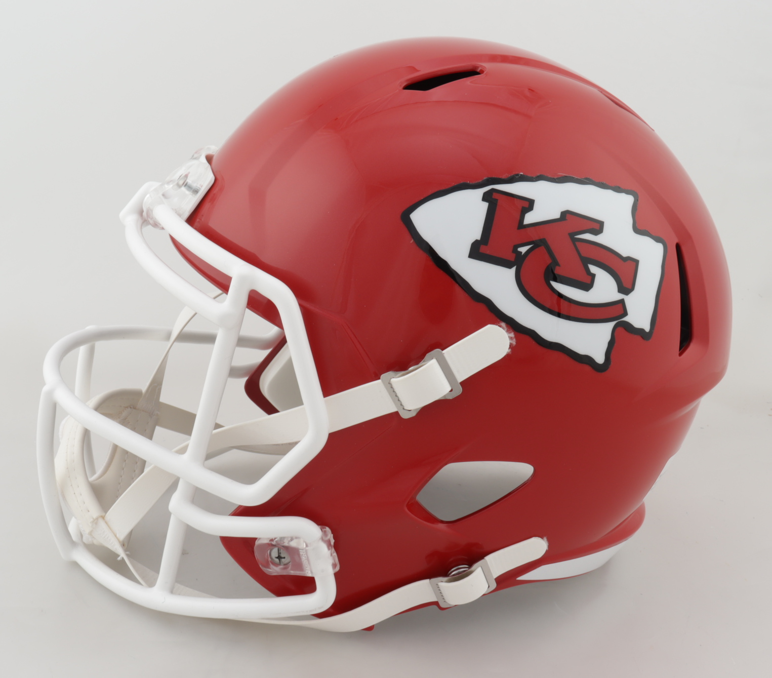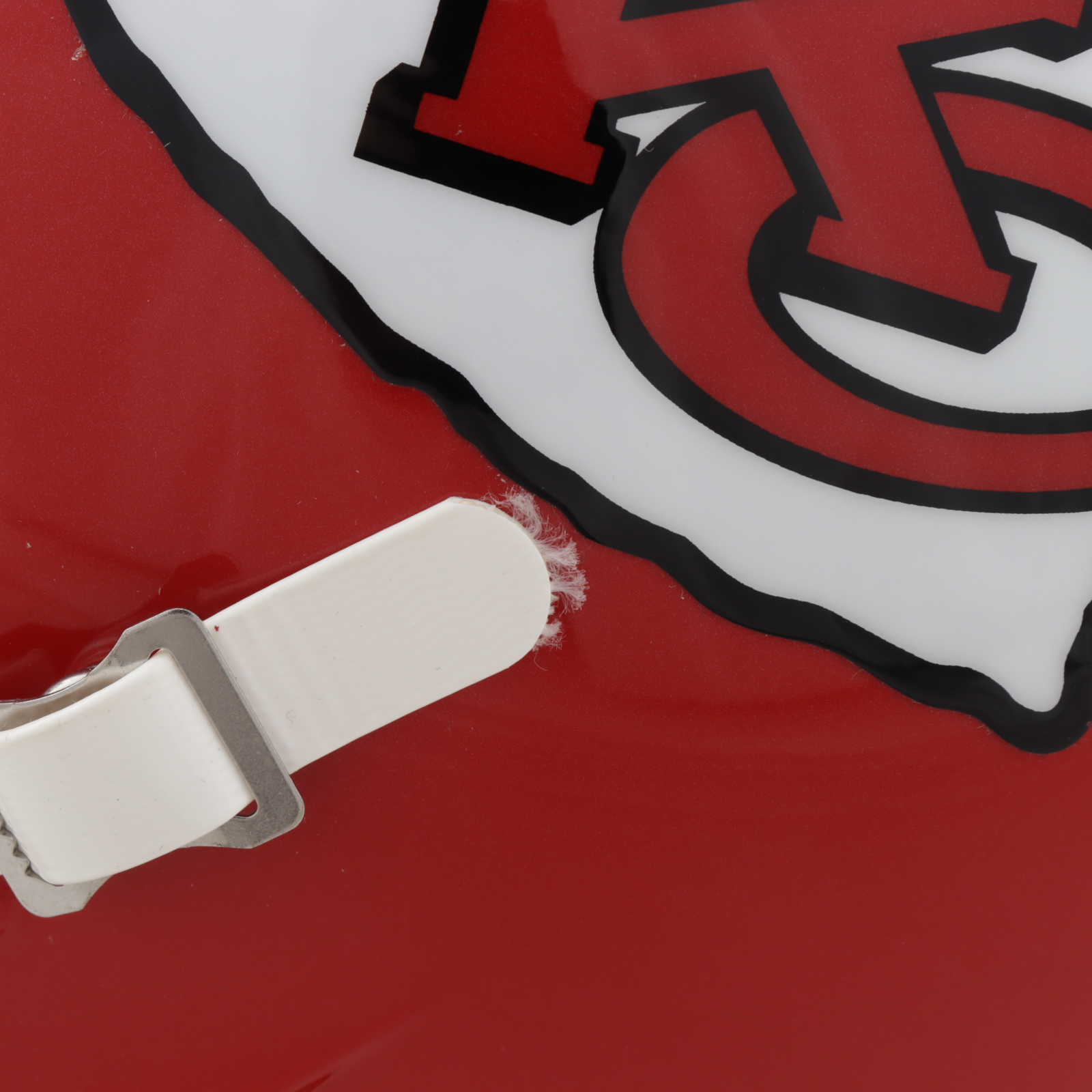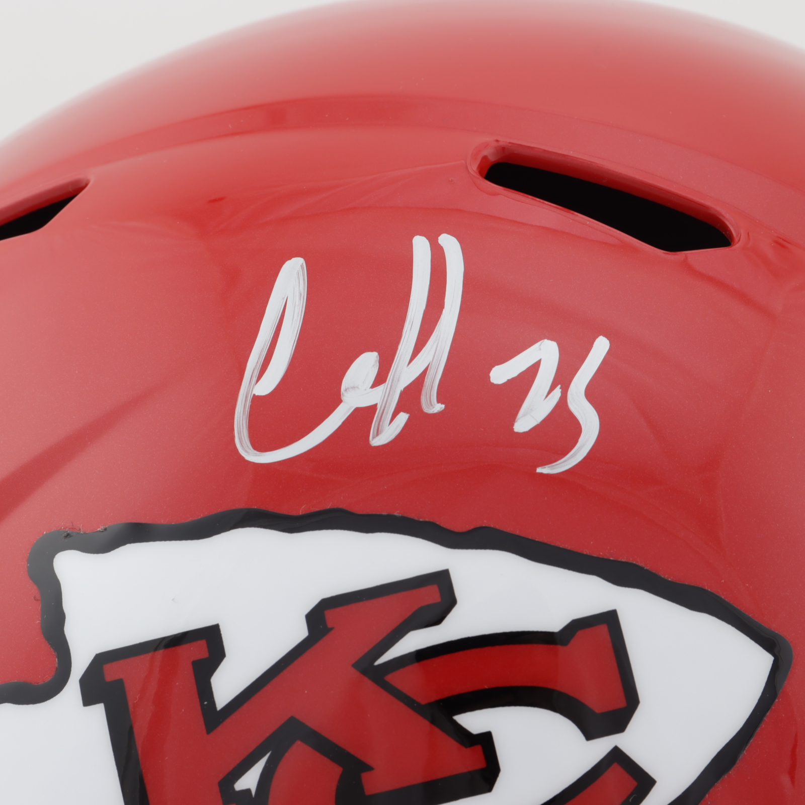 Riddell Kansas City Chiefs full-size replica Speed Helmet has been hand-signed by Clyde Edwards-Helaire. Please note, the helmet shows minor imperfection.