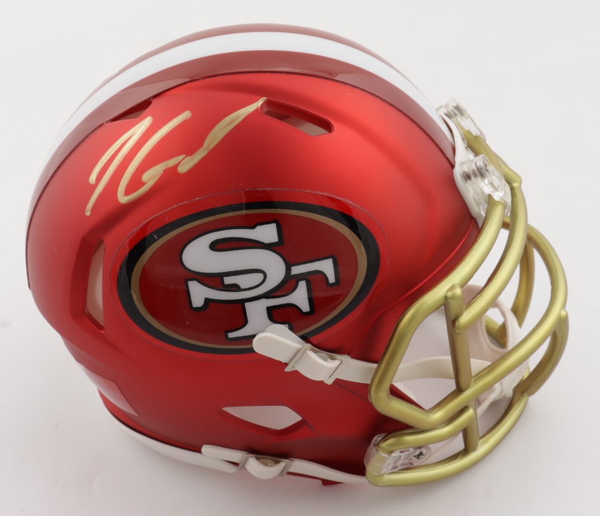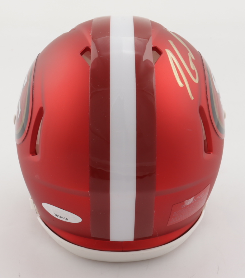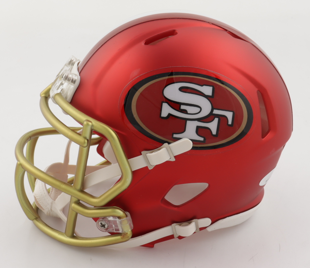 Riddell San Francisco 49ers Blaze Alternate Speed mini-helmet. Has been hand-signed by Jimmy Garoppolo.