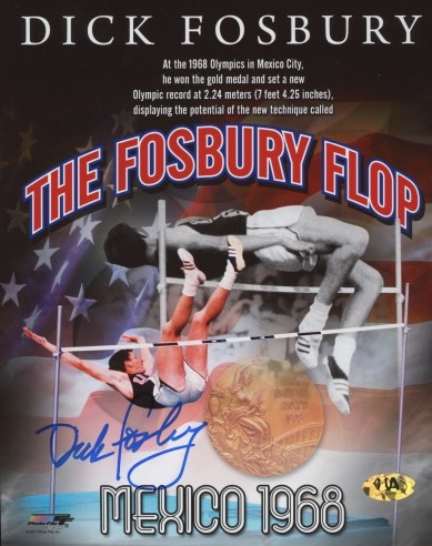 Photo measures 8" x 10" in size and has been hand-signed by Dick Fosbury.
