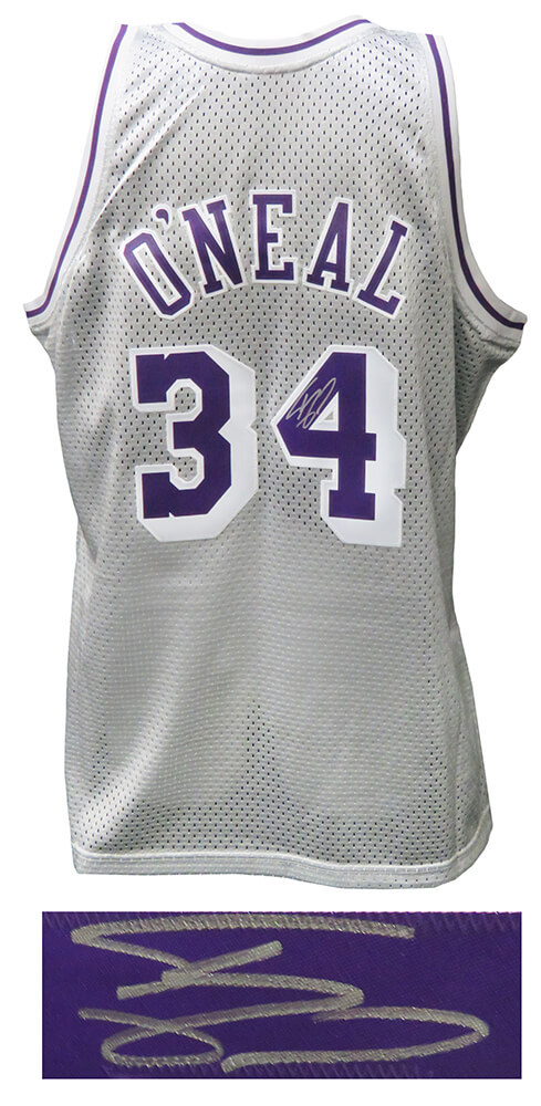Mitchell & Ness on-court style jersey. Everything is sewn on, size XL. Hand-signed by Shaquille O'Neal (Los Angeles Lakers, HOF).
